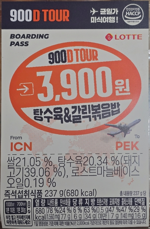 최근 젊은 세대를 겨냥한 가성비 도시락 시리즈로 등장한 900D Tour 탕수육&갈릭볶음밥은 저렴한 가격과 신선한 콘셉트가 돋보이는 제품입니다. 항공권을 연상시키는 독특한 패키지 디자인은 마치 여행을 떠나는 기분을 느끼게 해주며, 단순히 도시락 이상의 재미를 선사합니다.