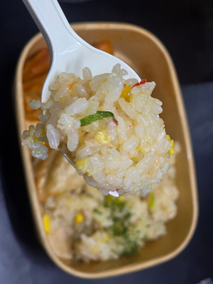 갈릭볶음밥은 마늘 향이 은은하게 퍼지며 짜거나 자극적이지 않고 부드러운 맛이 인상적이었습니다. 밥알이 기름에 골고루 코팅되어 고소한 식감을 즐길 수 있었습니다. 전자레인지에 데워 따뜻하게 먹으면 더욱 맛있게 즐길 수 있습니다.