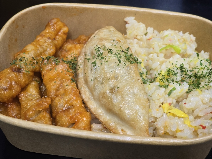 만두는 부드러운 피와 알찬 속이 잘 어우러져 도시락의 균형을 맞춰줍니다. 과하지 않은 간 덕분에 다른 메뉴들과도 조화롭게 어울려 전체적인 만족감을 더해줍니다.