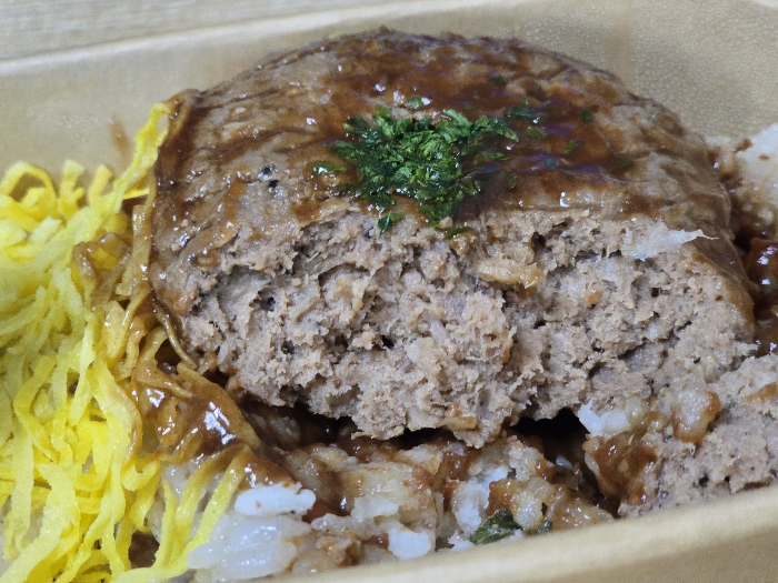 내용물: 함박스테이크, 볶음밥, 계란 지단