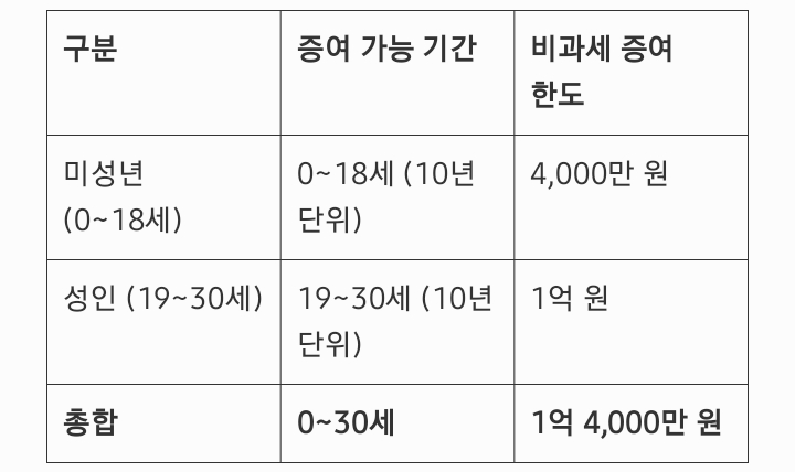 1. 출생부터 30세까지 비과세 증여 한도 정리
