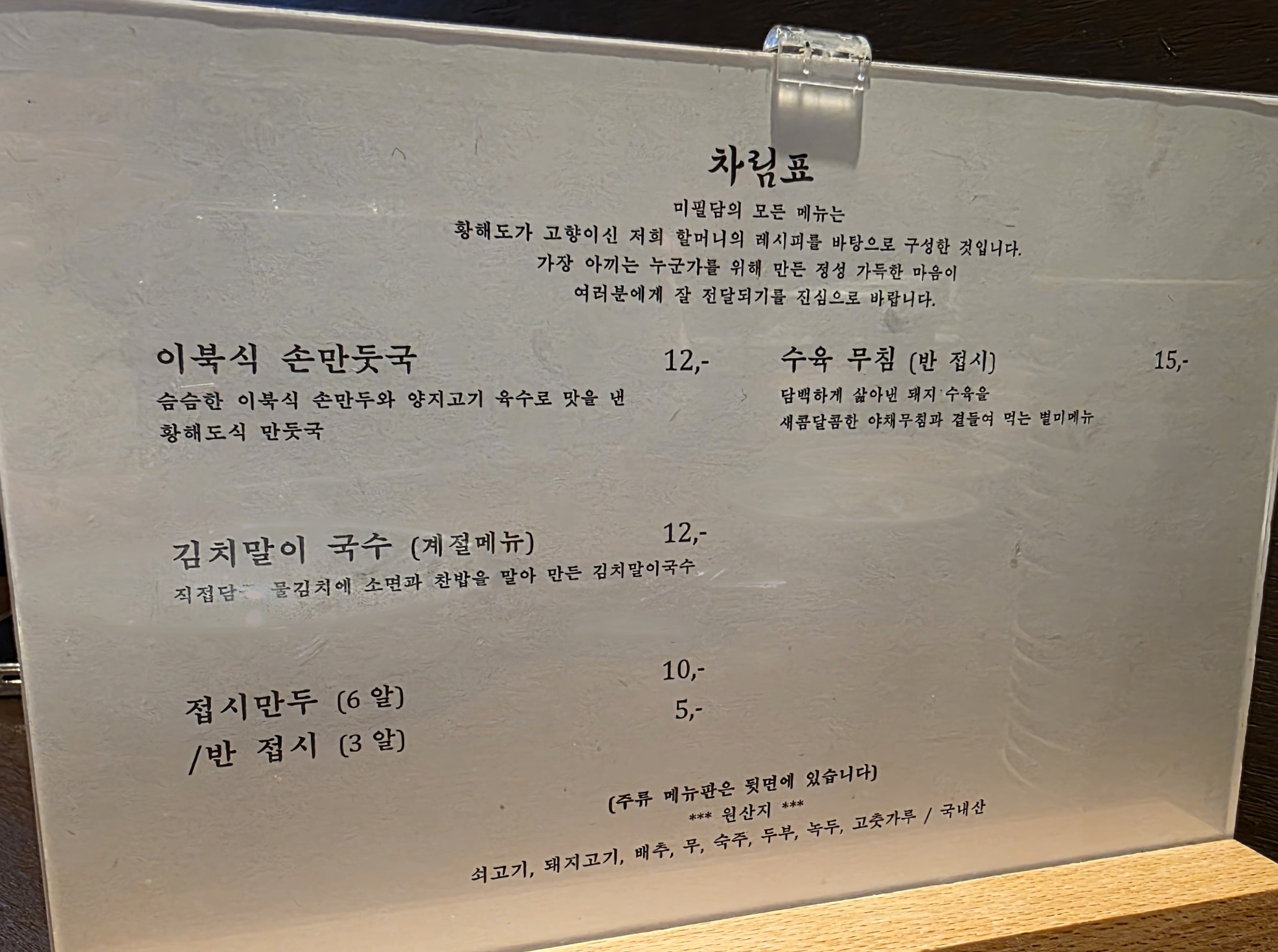🏷️ #합정맛집 #미필담 #이북음식 #손만둣국 #김치말이국수 #수육무침 #접시만두 #빕구르망 #서울맛집