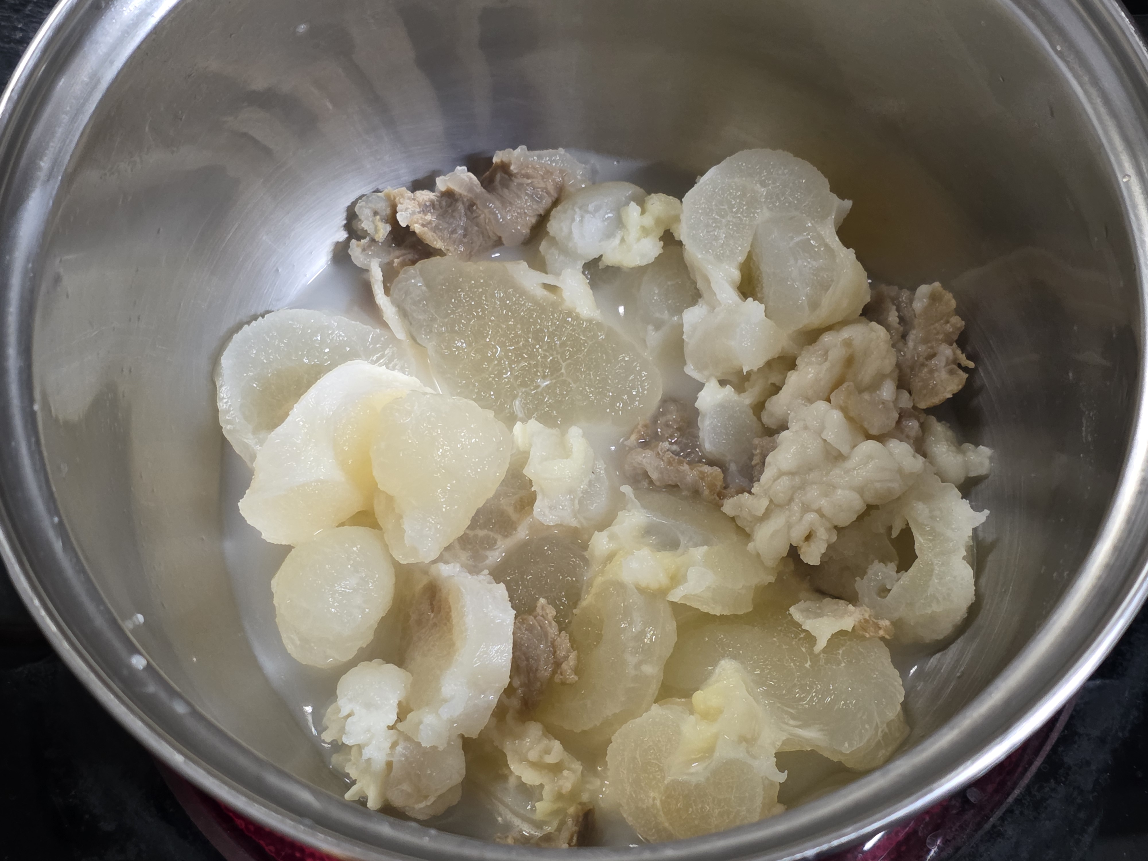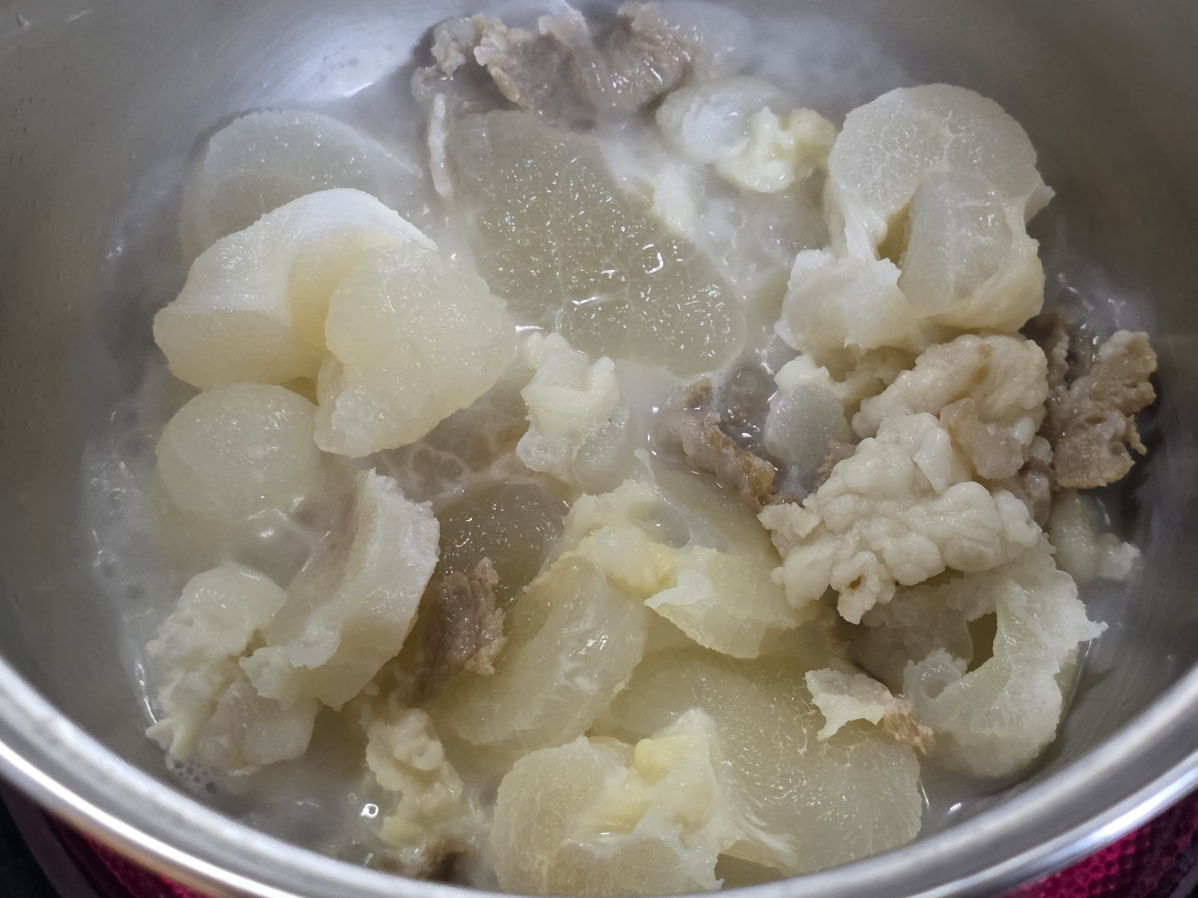 사골 국물 특유의 콜라겐 느낌이 점점 살아납니다.