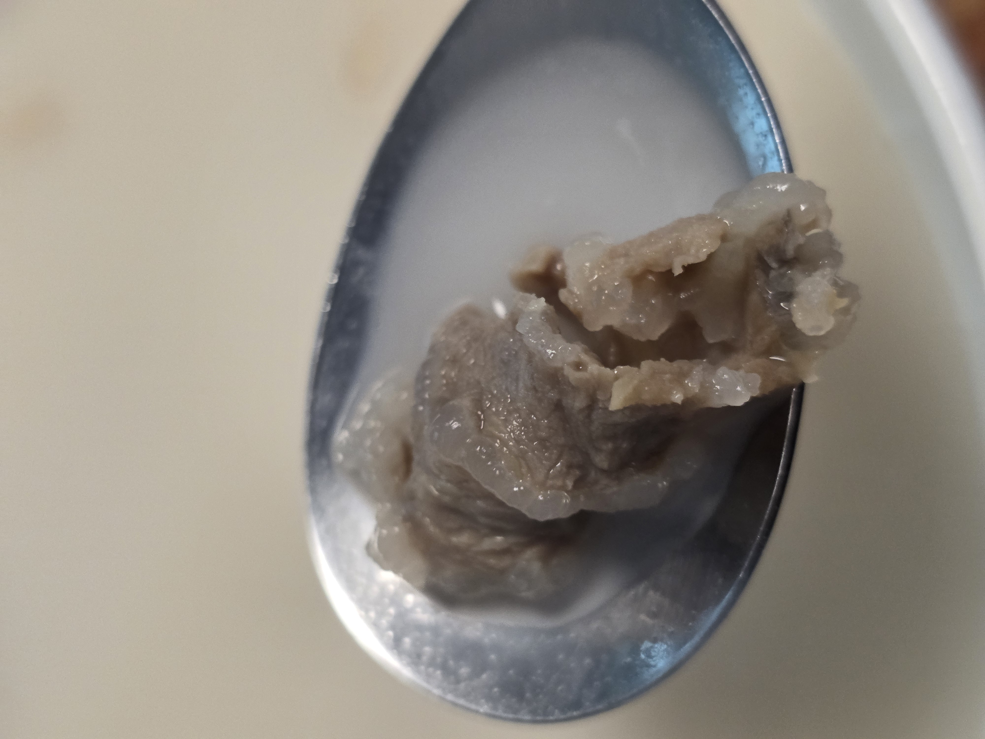 도가니와 고기가 한 숟가락에 같이 올라옵니다.