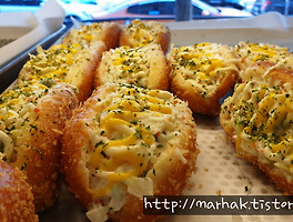 안에 햄과 달걀이 들어있고 마요네즈를 얹어 구운 빵이니 맛이 없을 수가 없습니다.