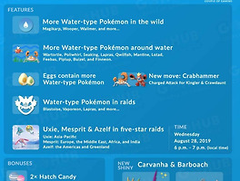 | [포켓몬][포켓몬고] 8월-9월 이벤트 (워터 페스티벌)(Water festival) (0) | 2019.08.25 |
