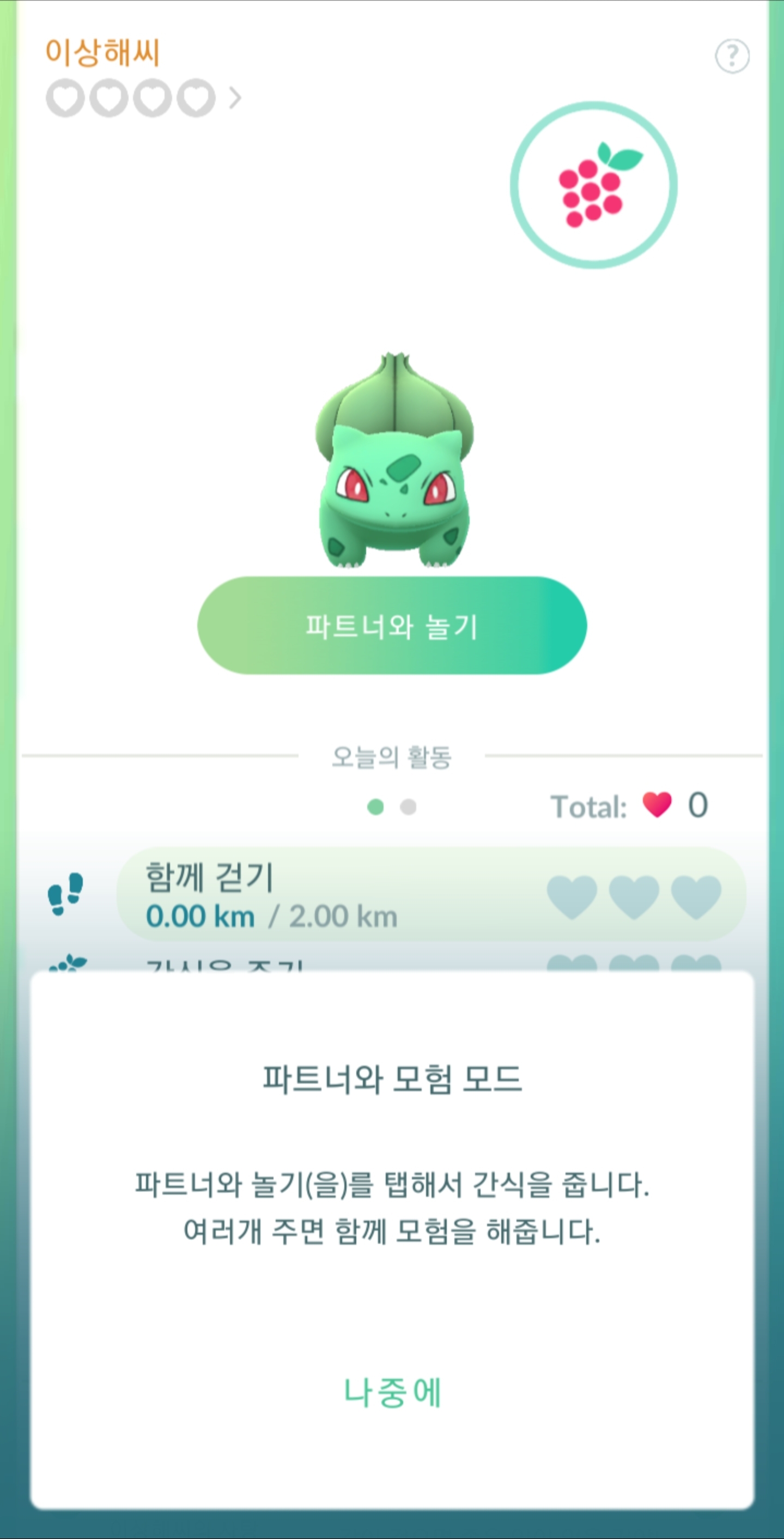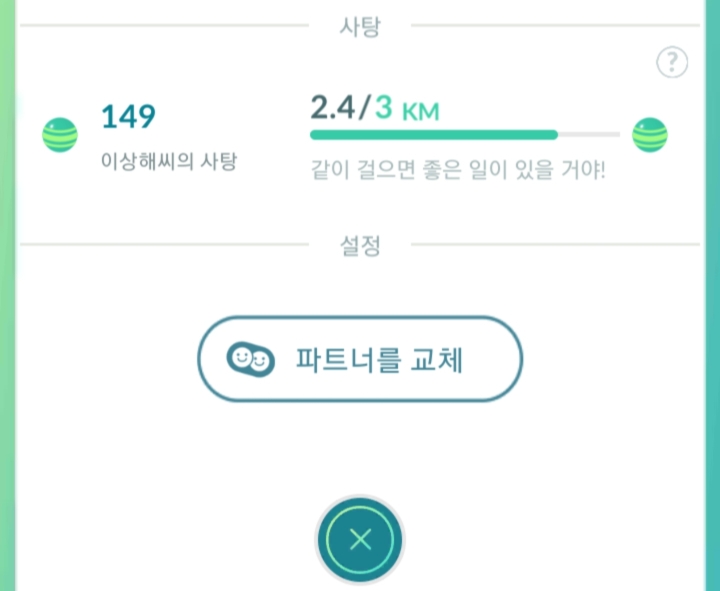 이제 파트너포켓몬 화면이 아래처럼 바뀝니다.