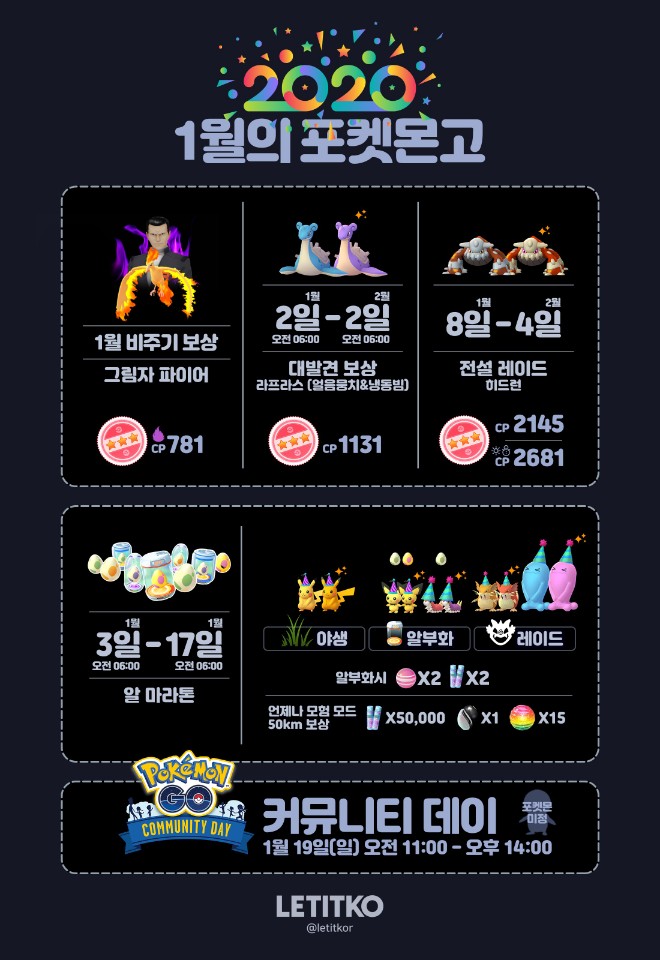 | [포켓몬고] 2020년 음력 설날 이벤트(치라미/빨간 포켓몬)(Lunar new year event) (0) | 2020.01.22 |