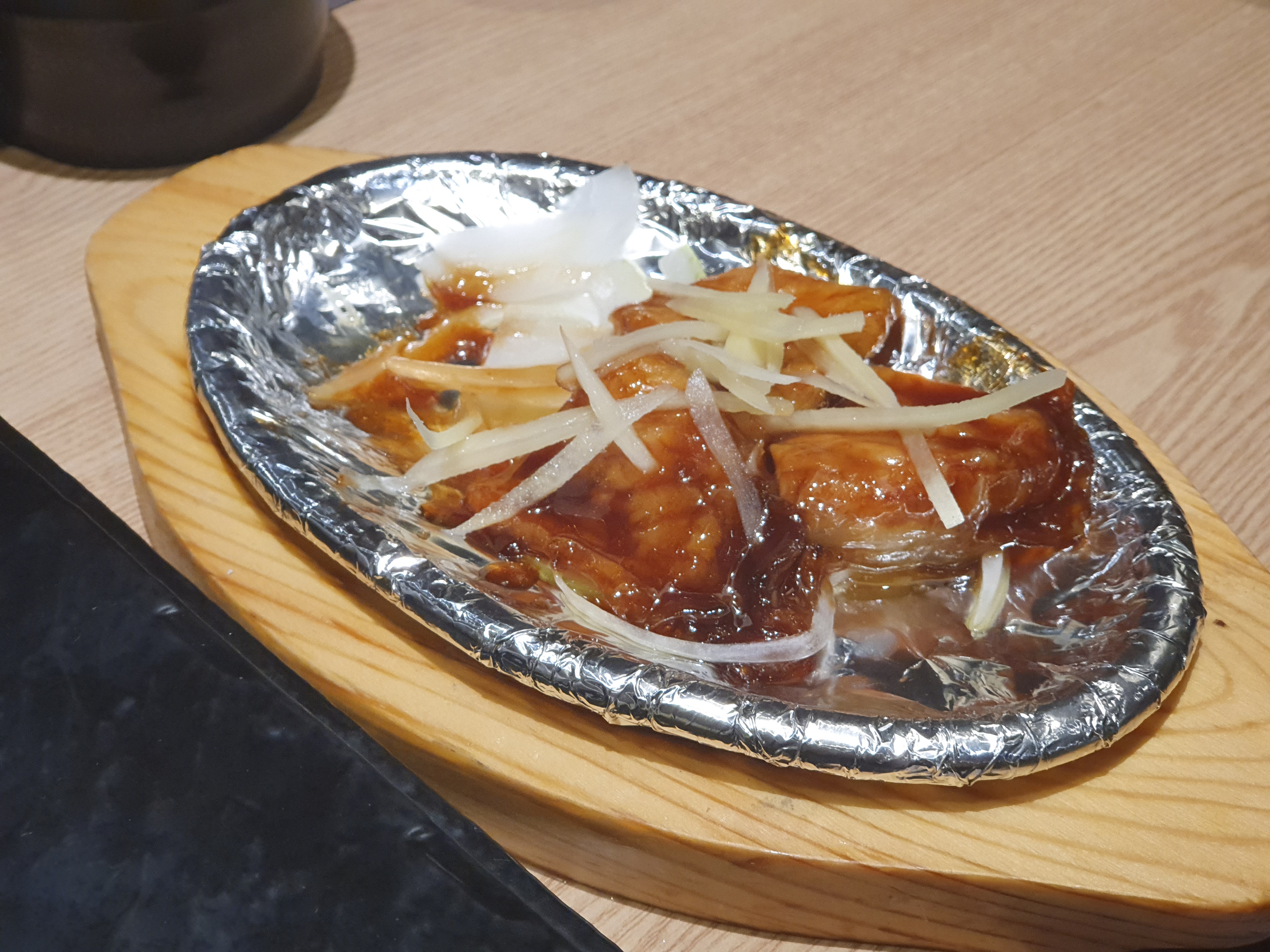 아래에 나온것은 초생강을 얹은 데리야끼 생선구이입니다.