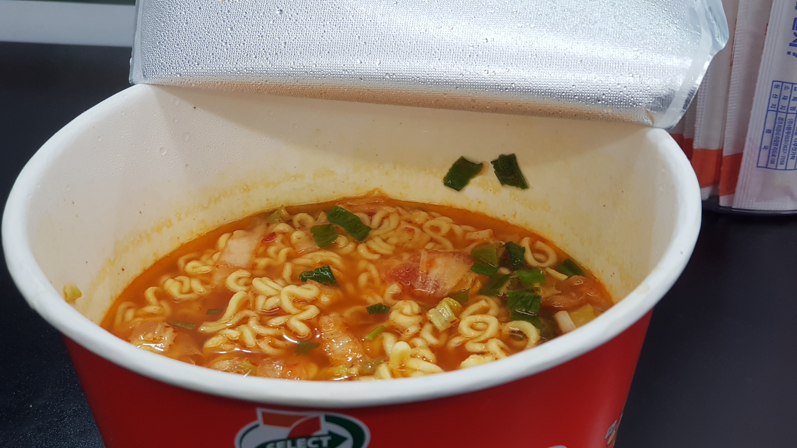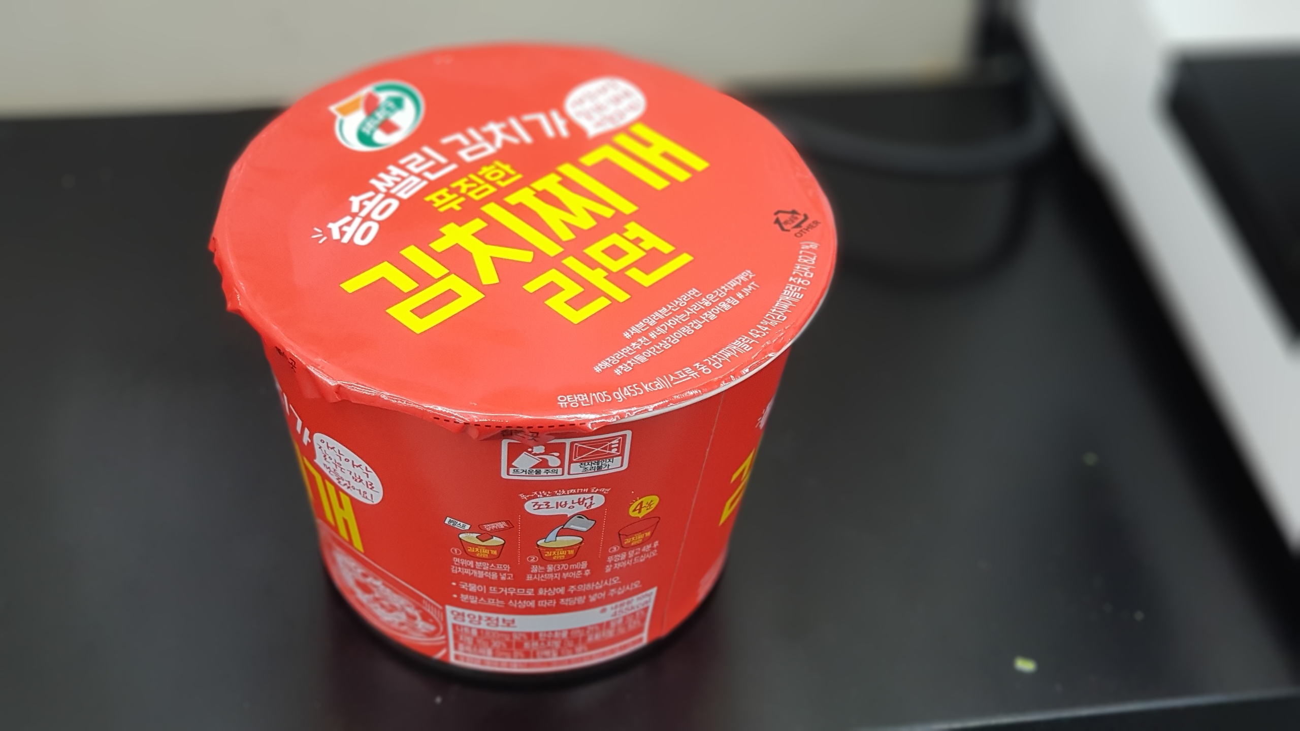 컵라면이고, 세븐일레븐 마크가 크게 보입니다.