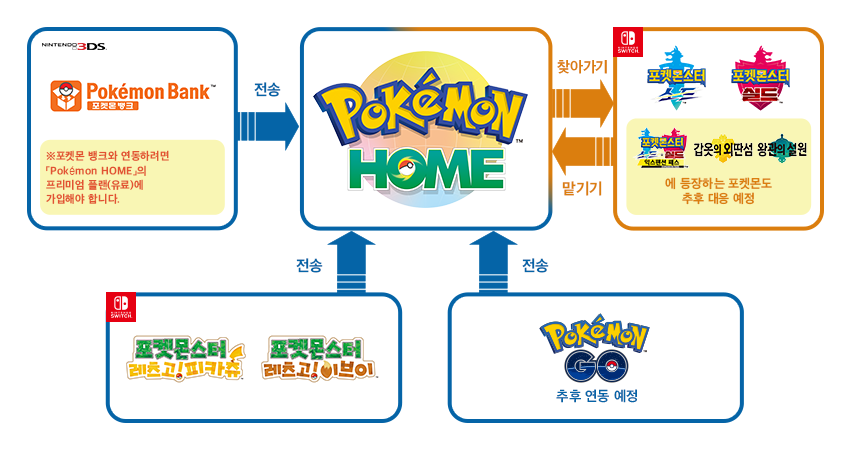포켓몬스터 소드/실드, 레츠고 피카츄/이브이, 포켓몬고 등에서 얻은 포켓몬을 한번에 관리하는 시스템입니다.