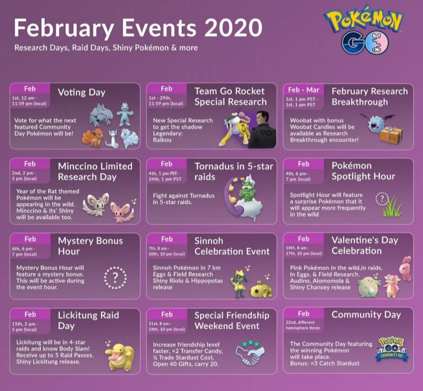 이번 글은 2020년 2월 포켓몬고 일정에 대해서 정리해보는 글입니다.