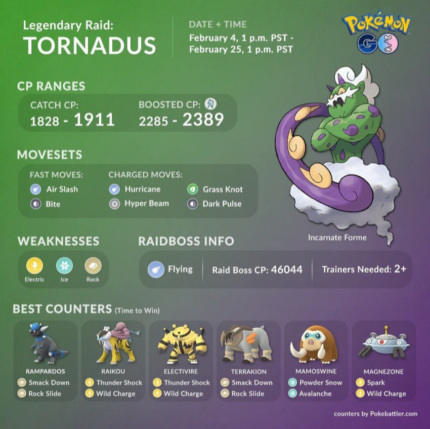 [포켓몬고] 2020년 3월 이벤트 내역 및 전설레이드배틀 5성 (볼트로스/CP표/MaxCP) (색이 다른 다크라이/기라티나/코바르온/루기아,