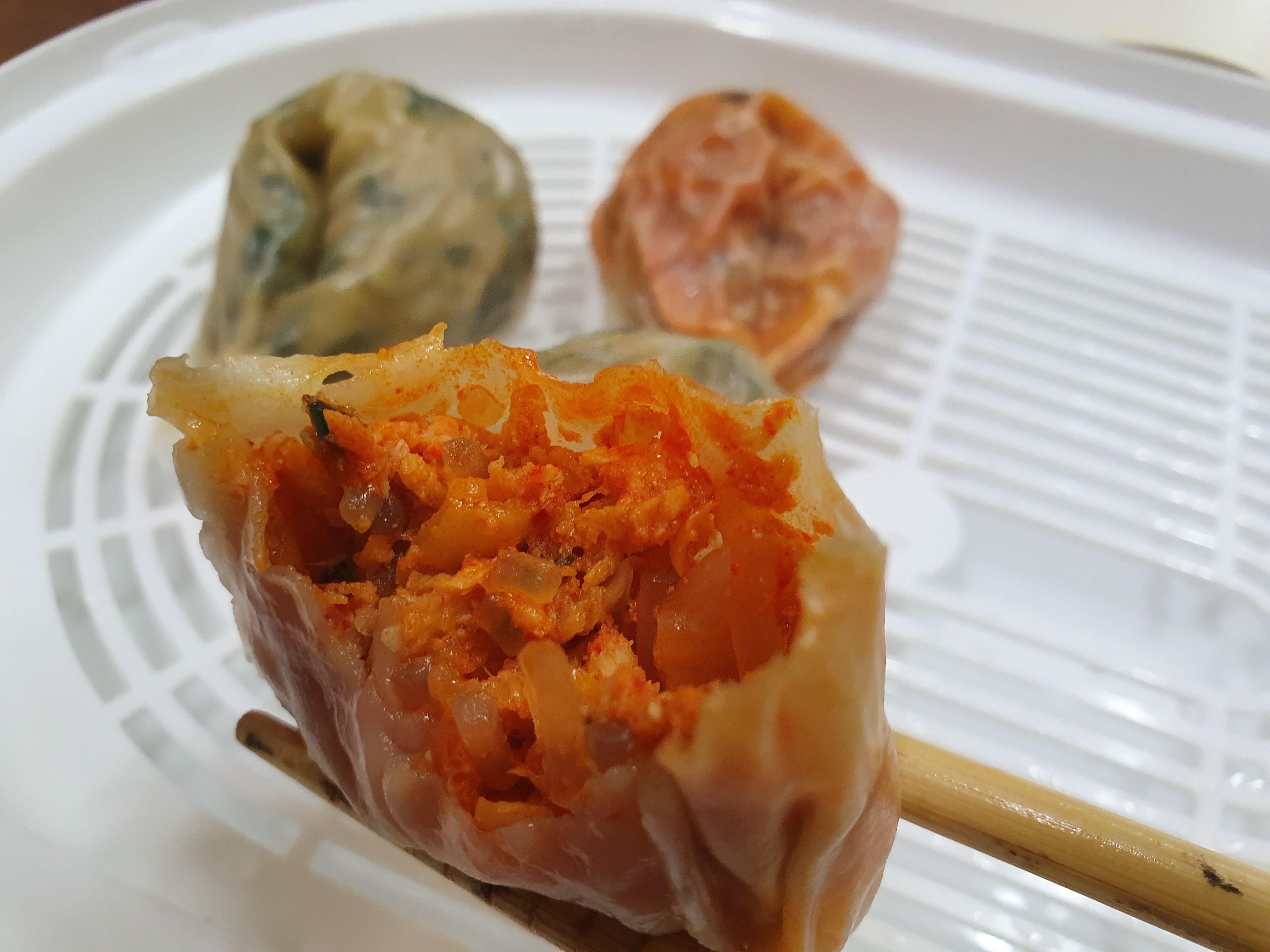 김치가 없는것은 아닌데 뭐랄까 김치만두라기보다는 매콤한 김치만두 느낌입니다.