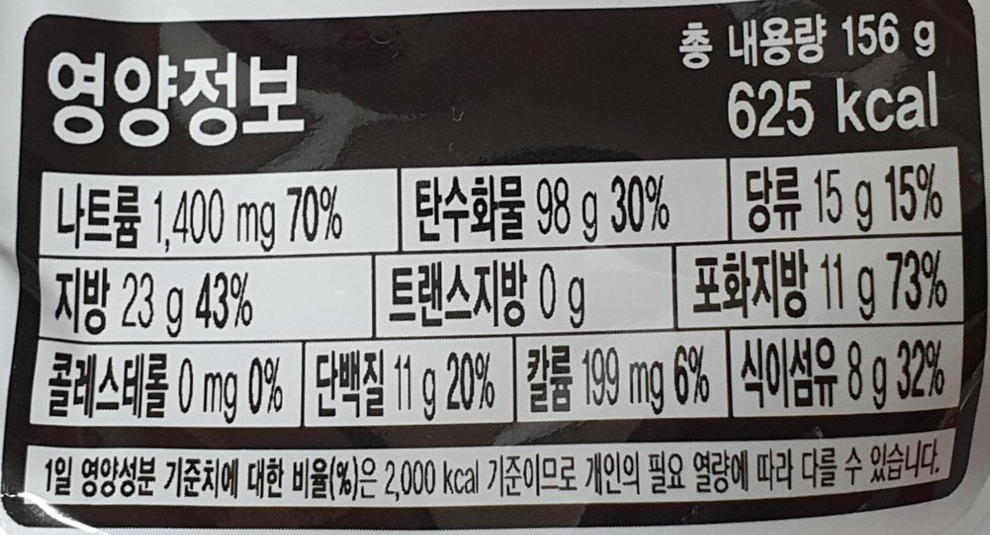 625kcal만큼 열량을 내는데, 라면이 대개 그렇듯이 적은편은 아닙니다.