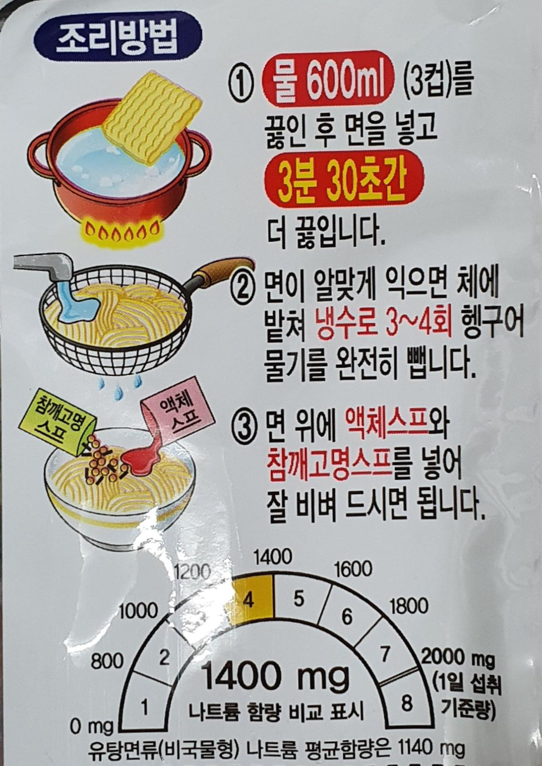 3분 30초를 삶으라고 했지만 저는 일단 시간을 재진 않고 적당히 면이 익어보일때 건지긴 했습니다.