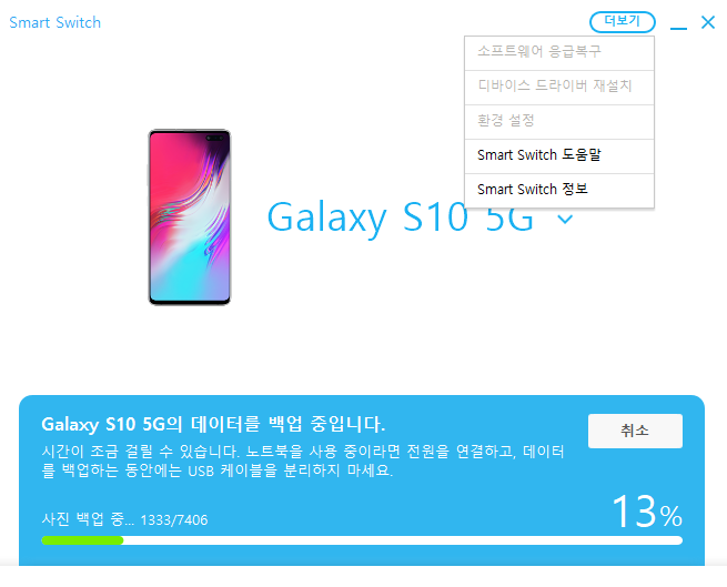 삼성스마트 스위치를 통해 갤럭시 시리즈를 PC에 백업할때 너무 한꺼번에 많은것을 백업하려고 하지말고, 조금씩 분할하여 백업하면 좀더 백업이 수월할 것 같습니다.