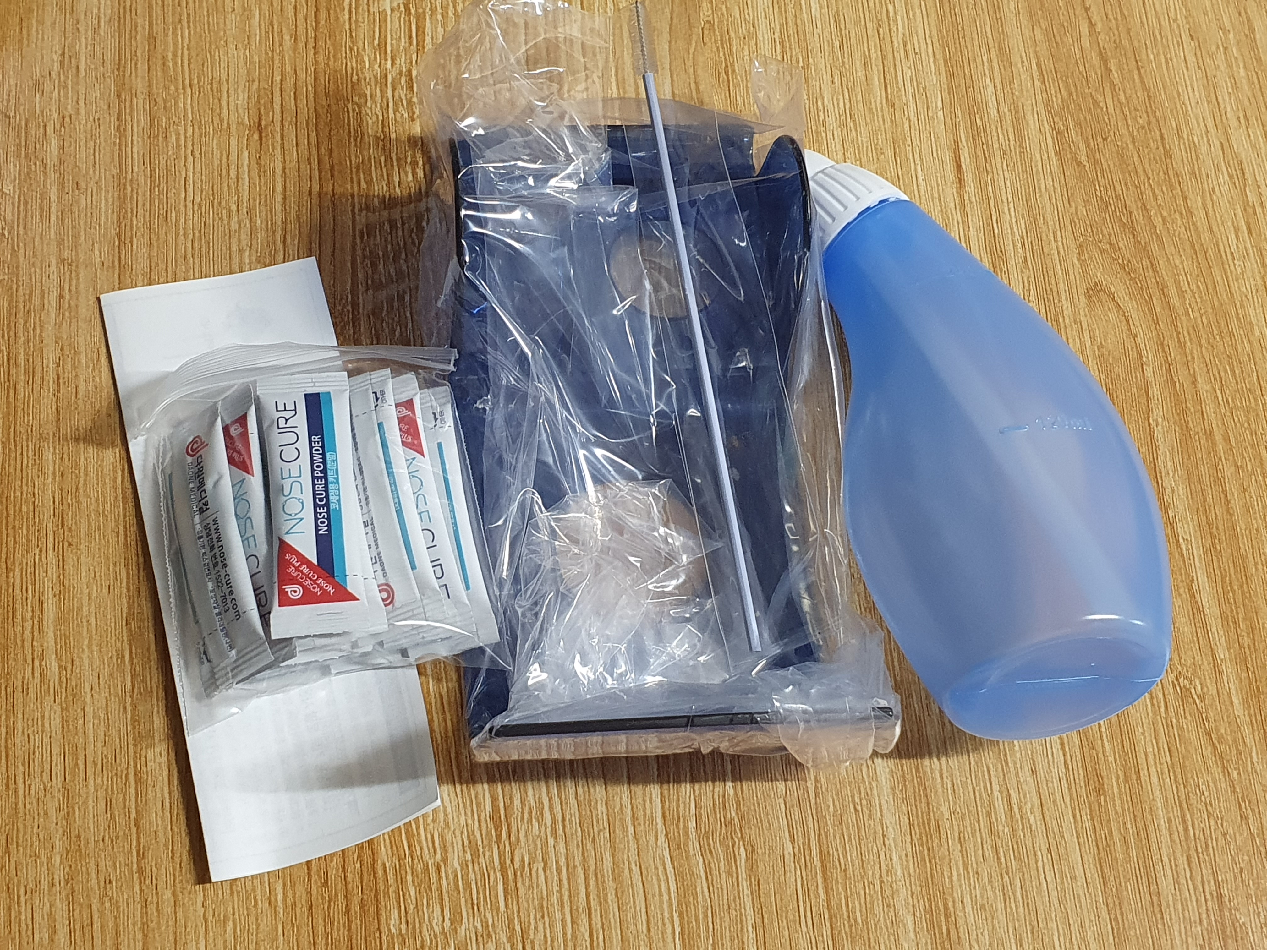 왼쪽에 봉지안에 들은것은 코세척 용액을 만들때 쓸 분말입니다.