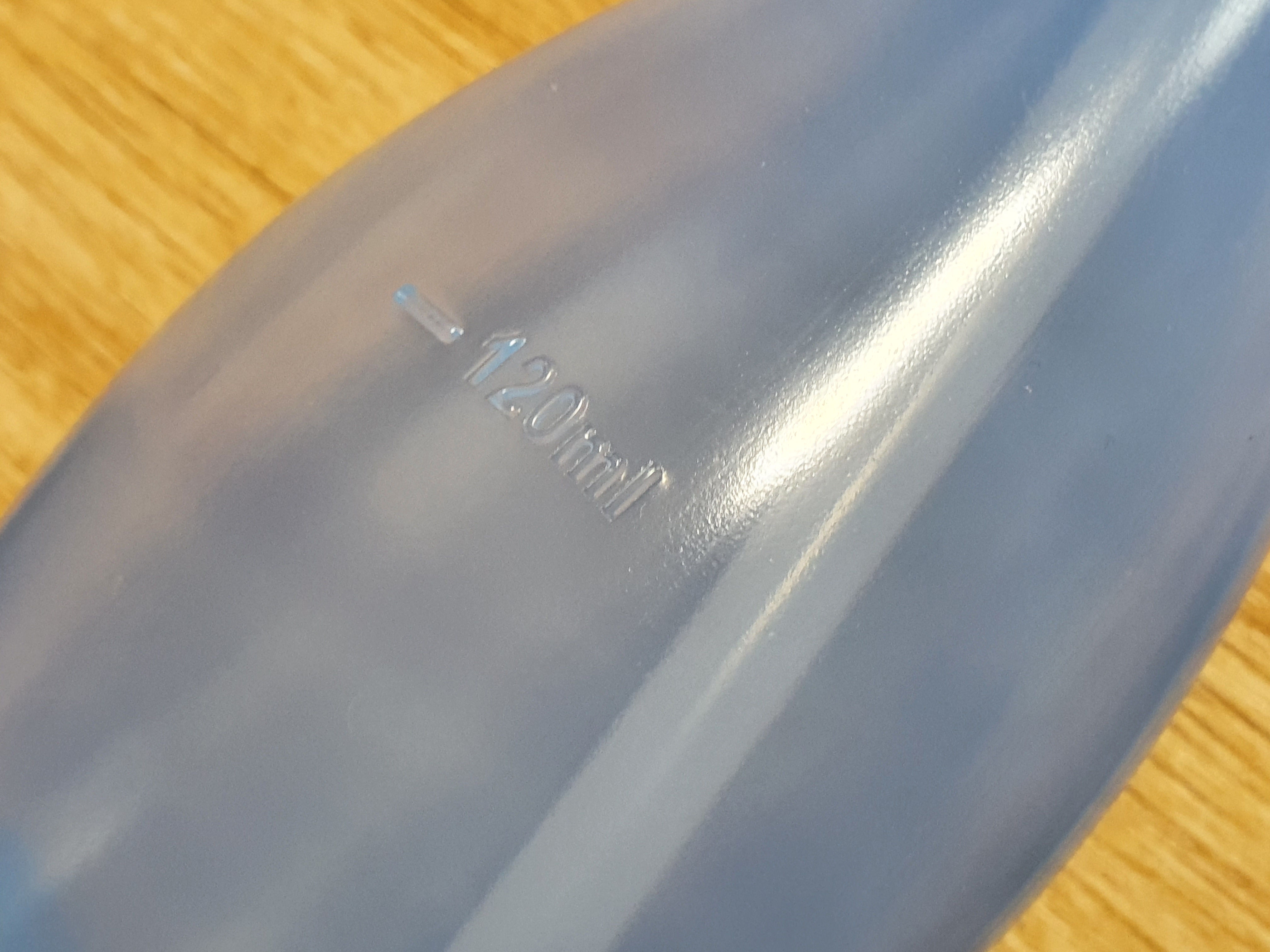 통의 중간에는 용량이 표기되어있습니다.120ml선과 240ml선이 있습니다.