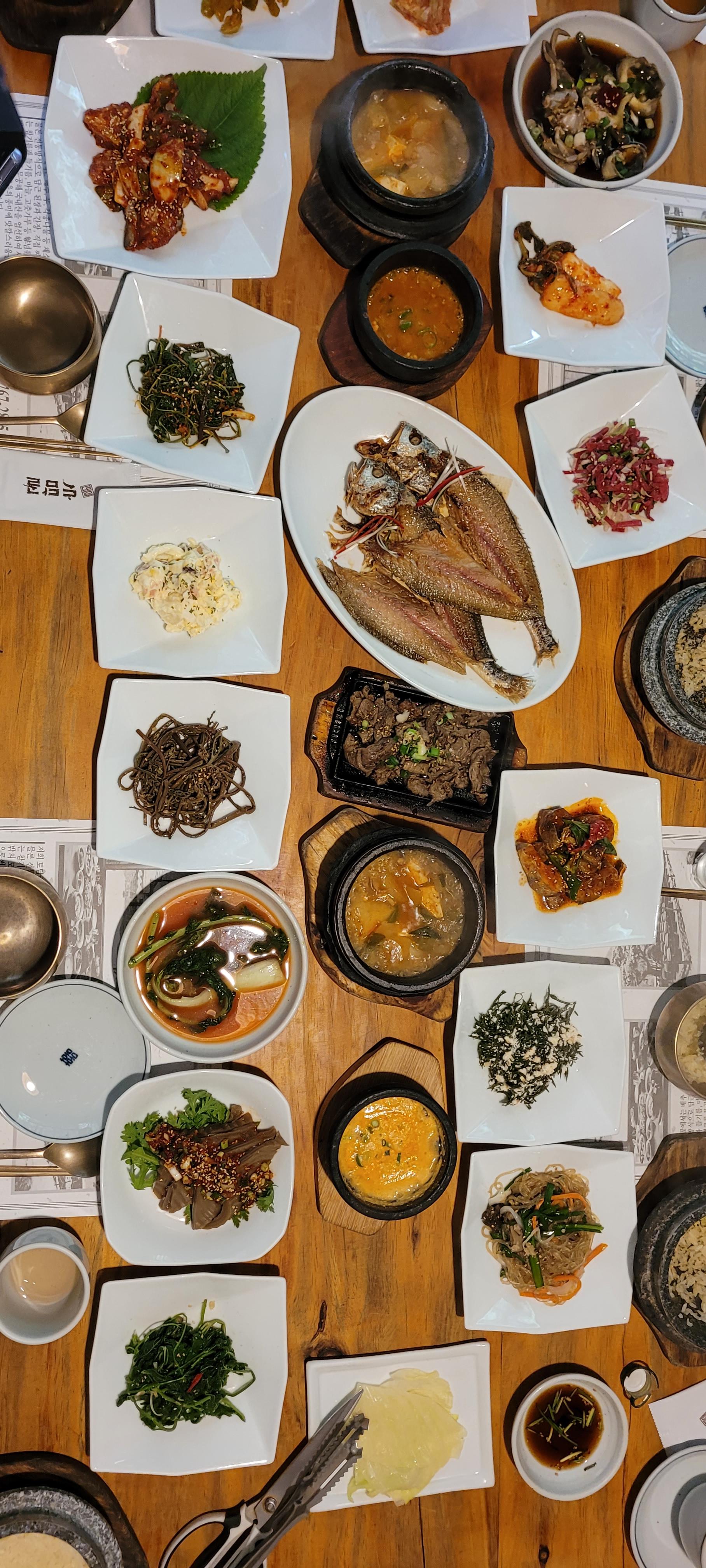 도착하여 음식을 주문하니 정말 다양한 반찬과 음식이 나왔습니다.
