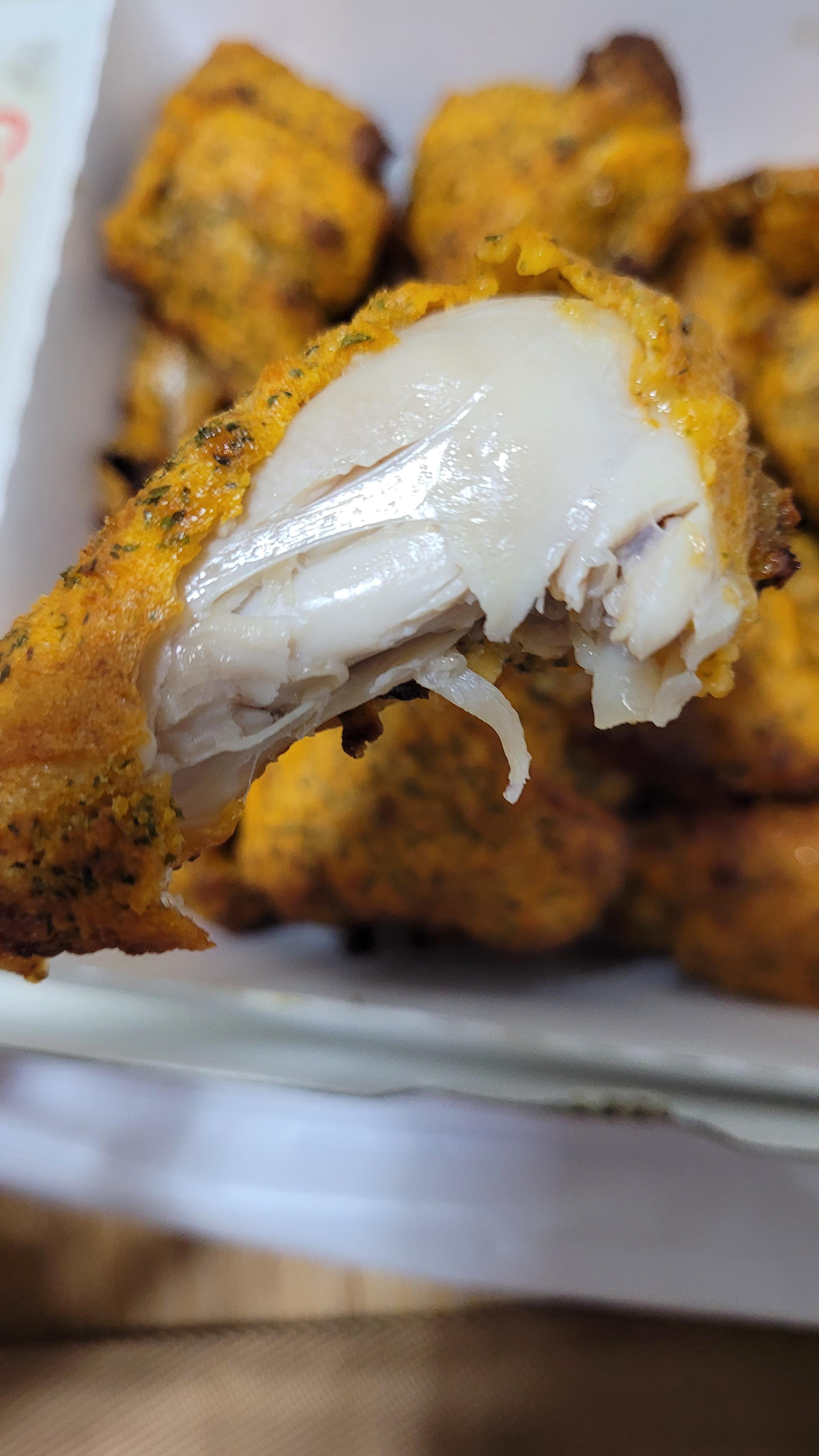 보통 남은 치킨은 눅눅해지기 마련인데, 이 녀석은 다음날 에어프라이어에 3분만 돌리면 다시 바삭! 일반 치킨과 다르게 기름이 덜해서 그런지 더 깔끔하게 되살아나는 느낌이에요.
