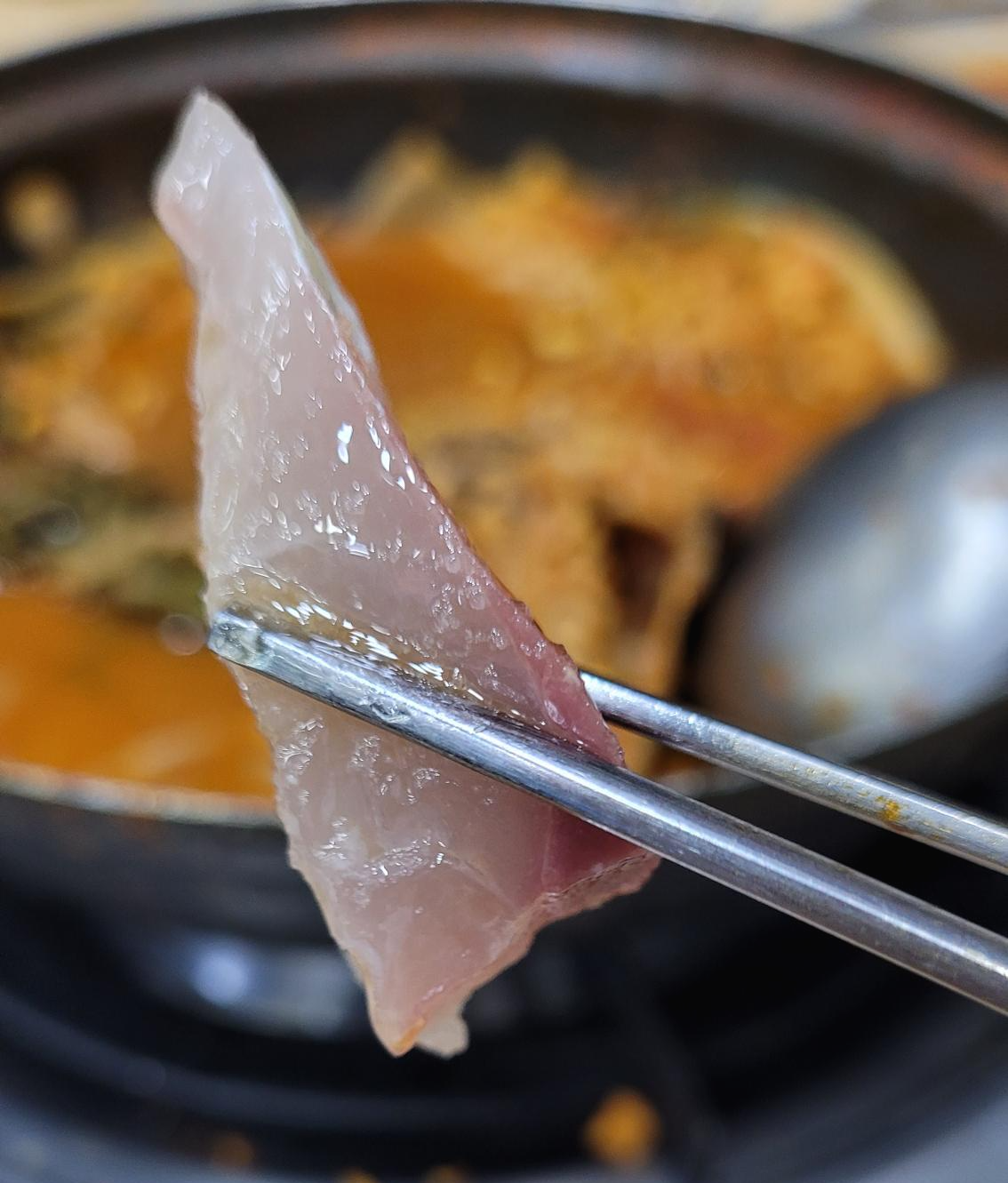 서더리 매운탕을 시켰는데, 모듬회+매운탕이라서 광어, 우럭등의 잡뼈를 넣고 탕을 만들어줍니다.
