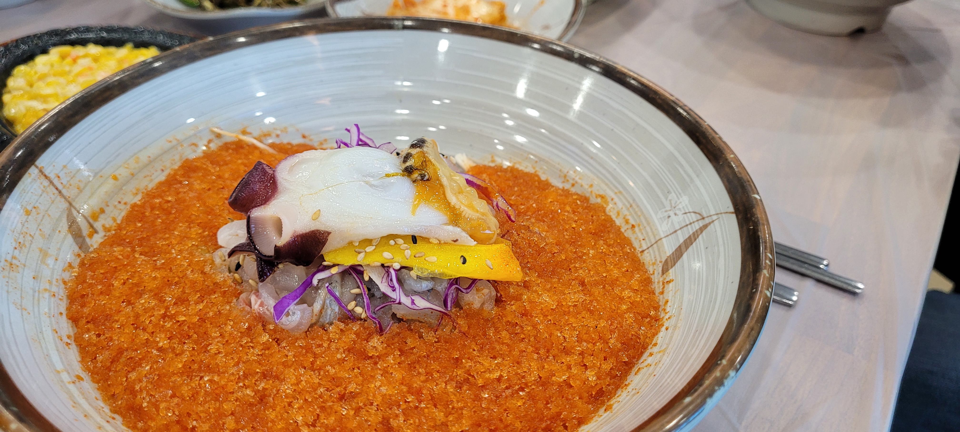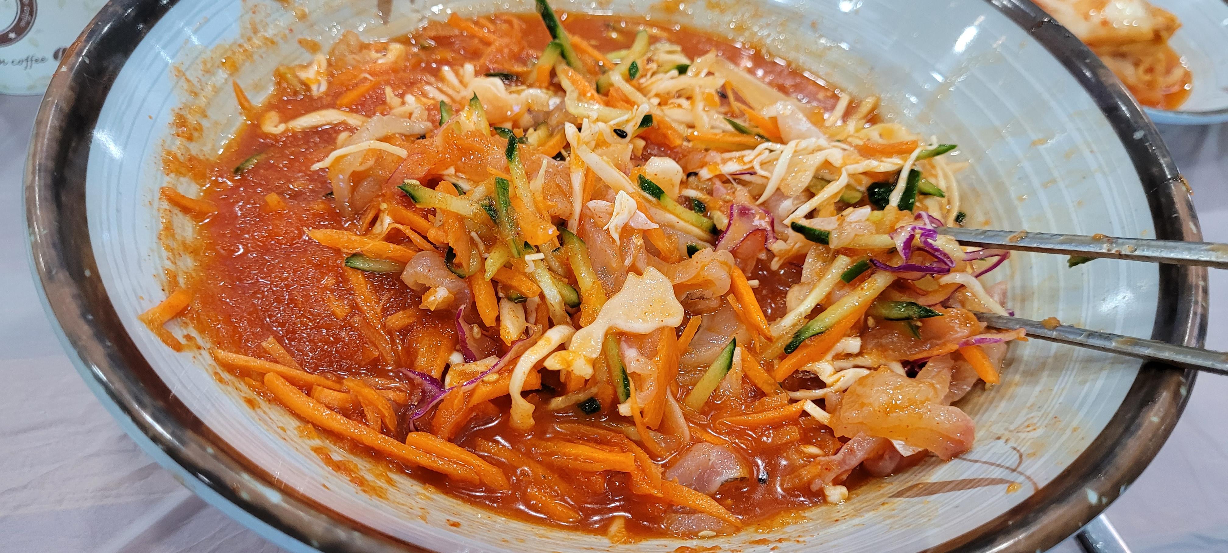 물회말고 오징어 물회를 시킬까 했는데, 요즘 오징어가 비싸서 얼마 못들어가기 때문에 그냥 물회로 추천하셨습니다.