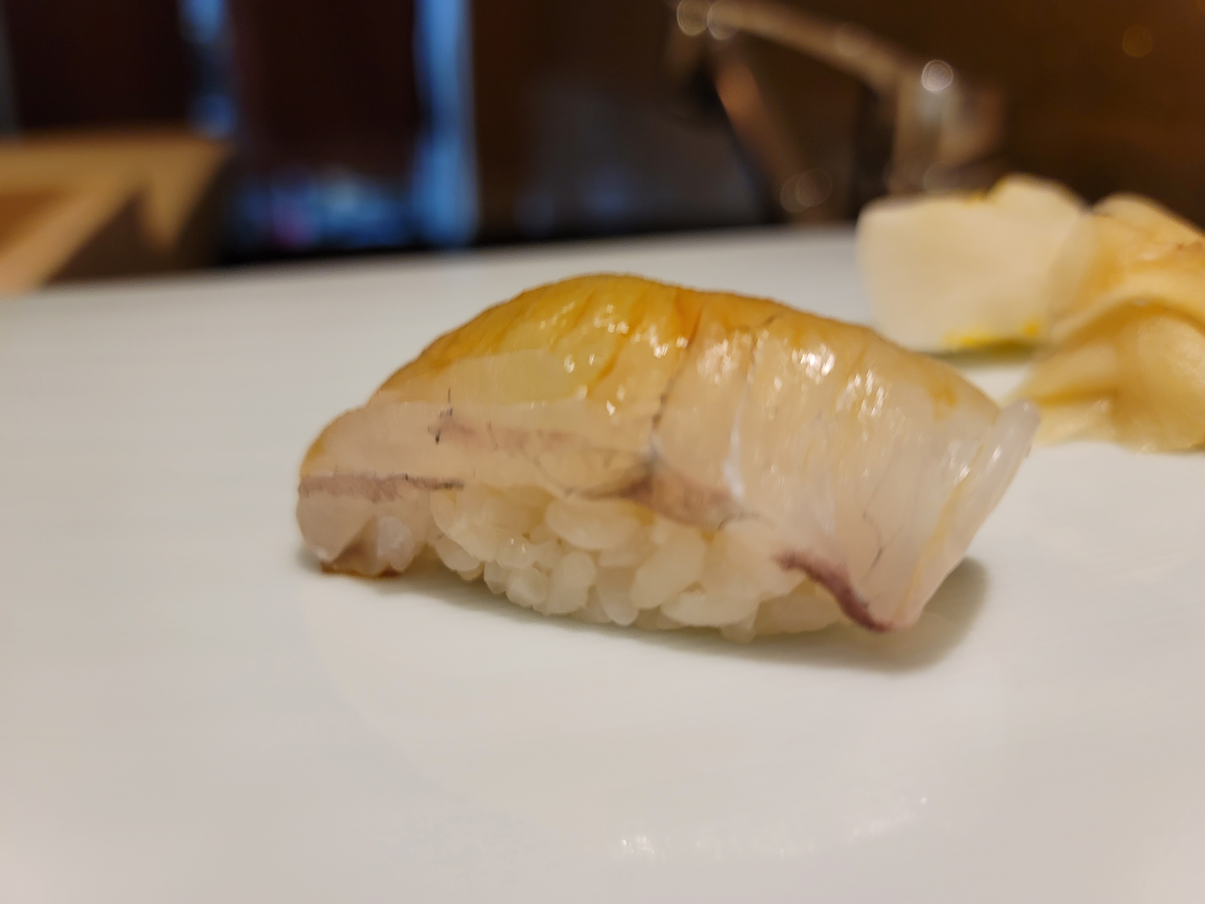 셰프님이 손님과 가벼운 대화를 나누면서도 신중하게 스시를 만드는 모습이 인상적이었습니다. 셰프의 손길을 보며 스시가 만들어지는 과정을 보는 것은 오마카세의 묘미라고 할 수 있습니다.