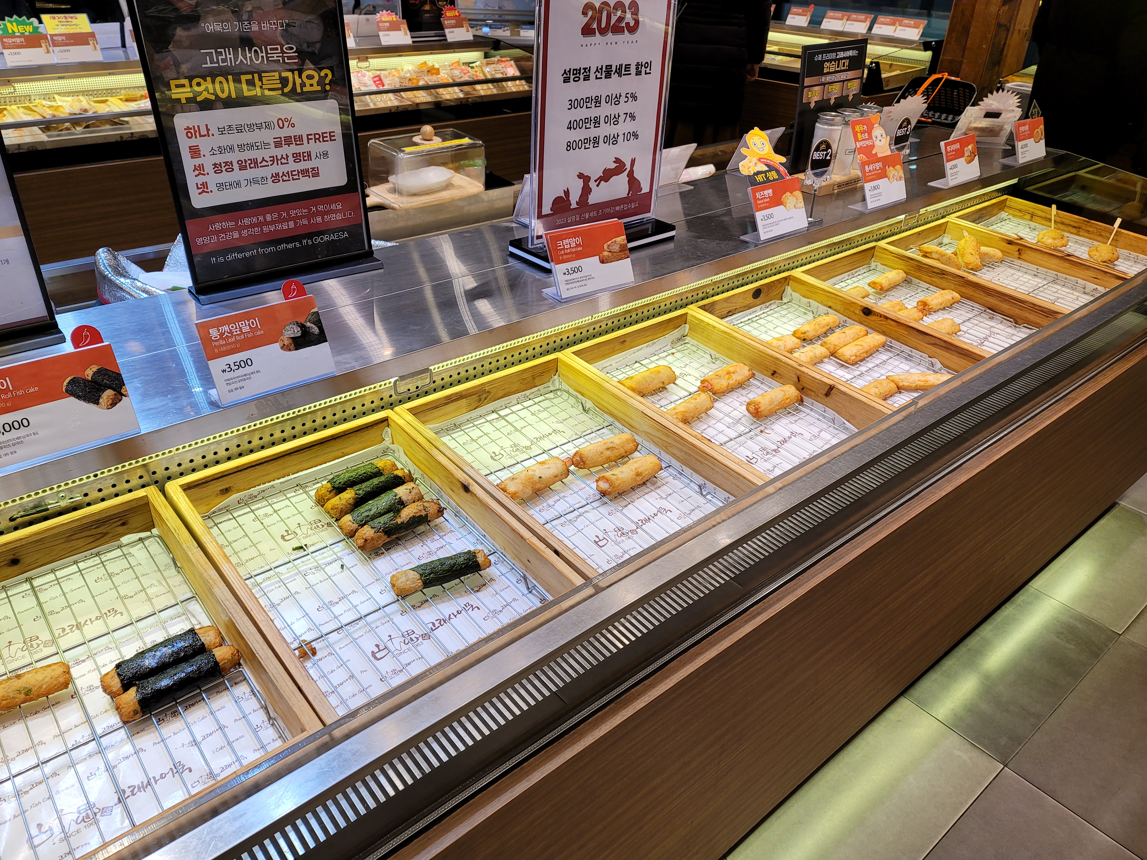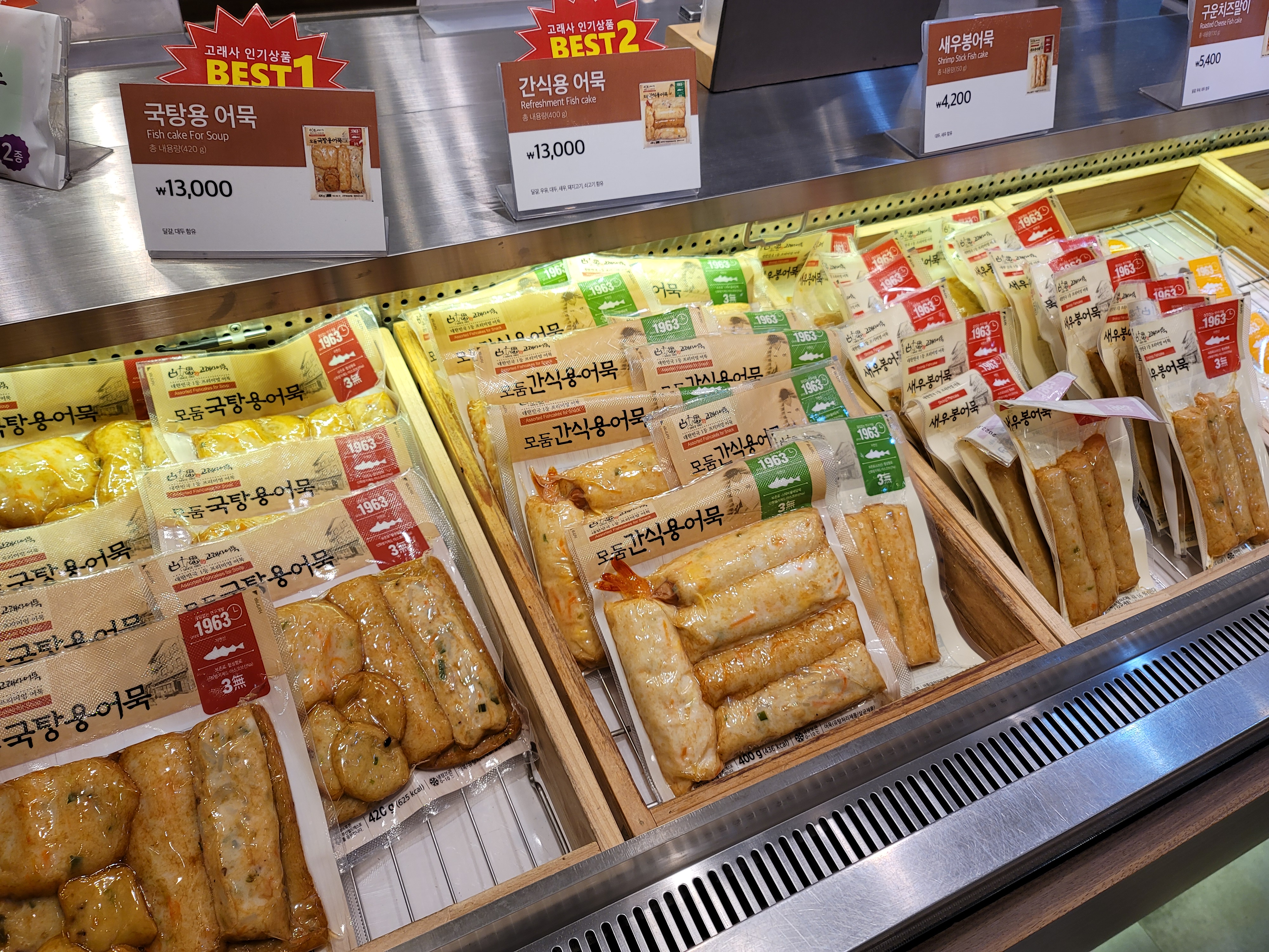 부산은 어묵으로 유명한데, 특히나 고급어묵브랜드인 고래사어묵이 가게를 내고 팔고있습니다.