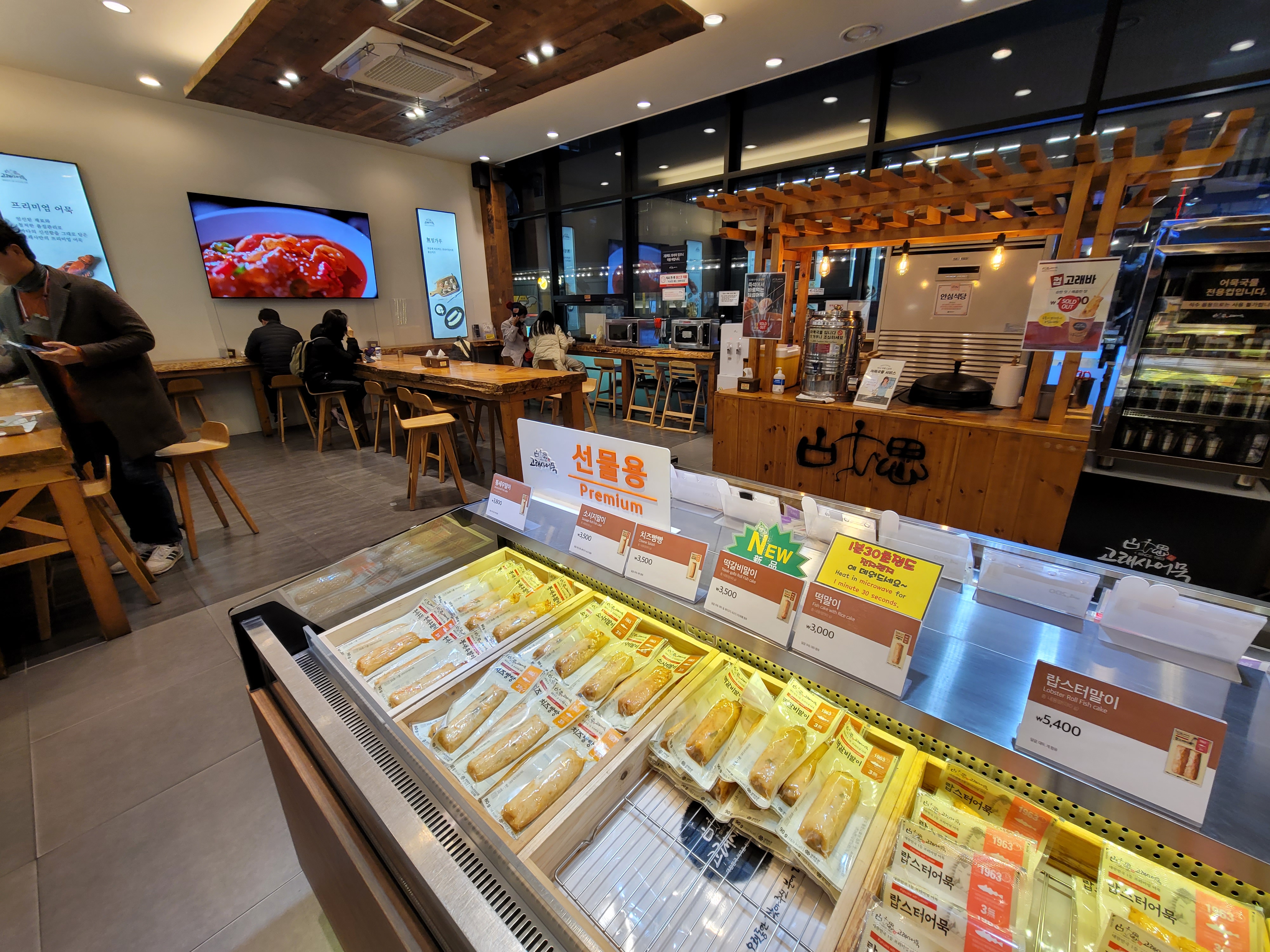 여기서는 다양한 어묵을 즐길 수 있어요. 특히, 매콤한 땡초볼과 씹는 맛이 일품인 문어말이가 인기 메뉴예요. 물론 다양한 종류의 어묵을 팔고 있어서, 취향에 따라 골라 드시면 됩니다. 밀가루가 들어가지 않은 어묵이라 그런지, 어육의 풍미가 가득하고 속이 편안해요. 가족이나 친구, 지인들에게 선물용으로도 아주 좋아요!