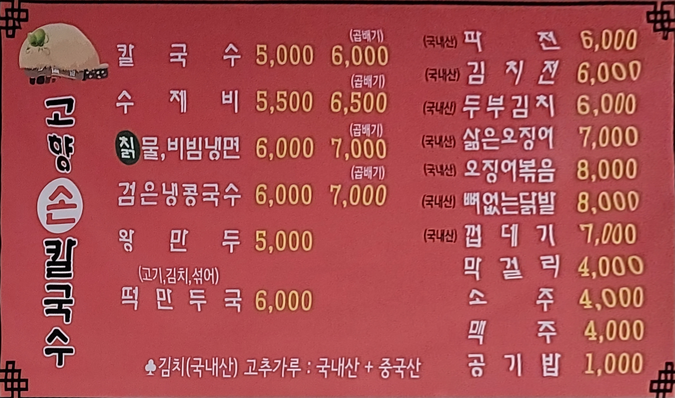 경기도 광주시 쌍령동에 위치한 '고향손칼국수'는 합리적인 가격과 정겨운 맛으로 많은 사랑을 받고 있는 맛집입니다.