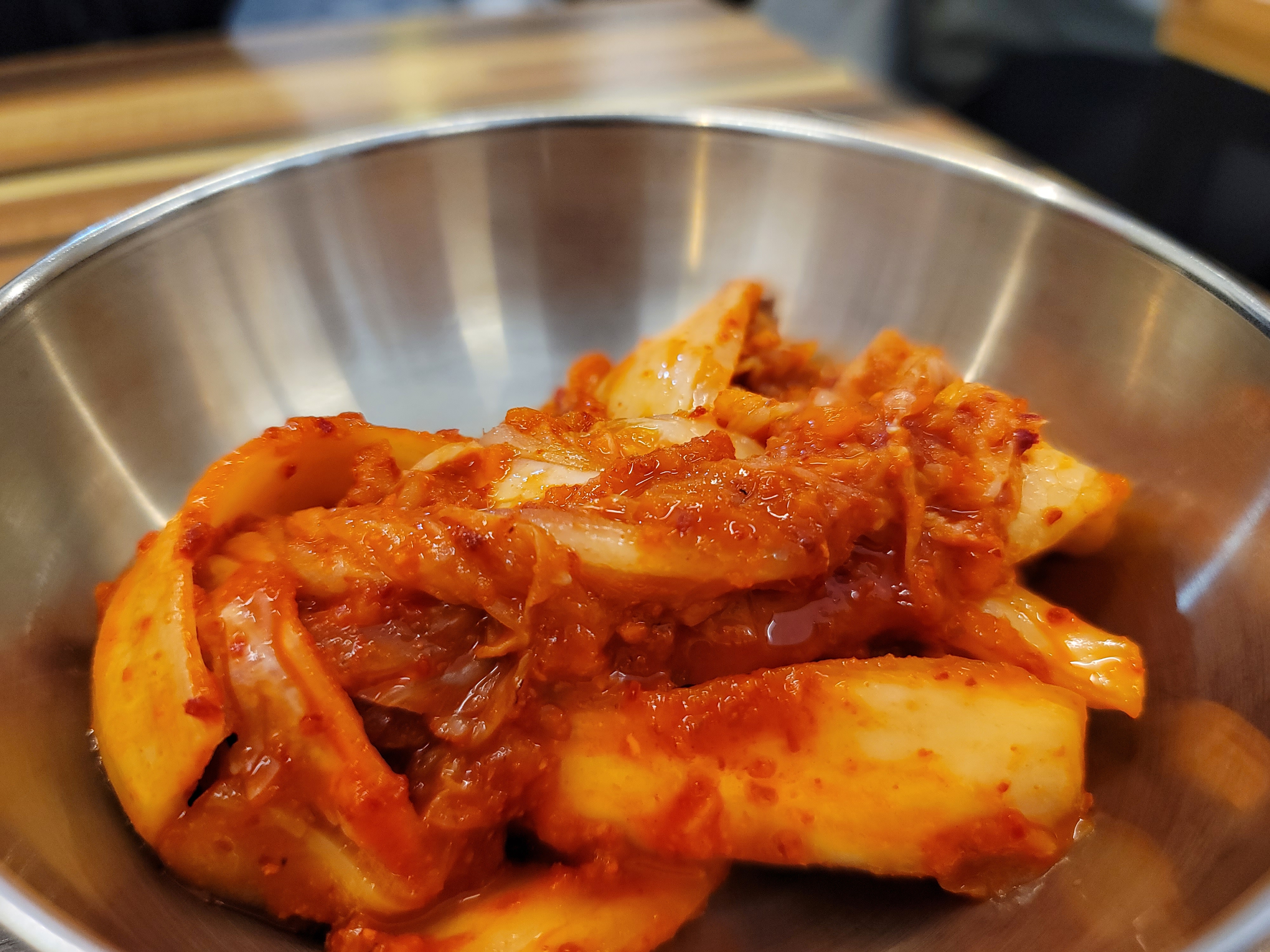 특히 해장이 필요한 날에는 이 국물이 딱이에요. 얼큰하지는 않지만, 사골 국물처럼 깊은 맛이 나서 속이 풀리는 느낌이랄까요? 뼈칼국수의 고기 양도 꽤 많아서 고기 좋아하는 분들한테는 천국 같은 메뉴입니다. 그리고 이 집은 공깃밥이 무한 리필이라서 국물에 밥 말아 먹으면 정말 배가 든든해져요.