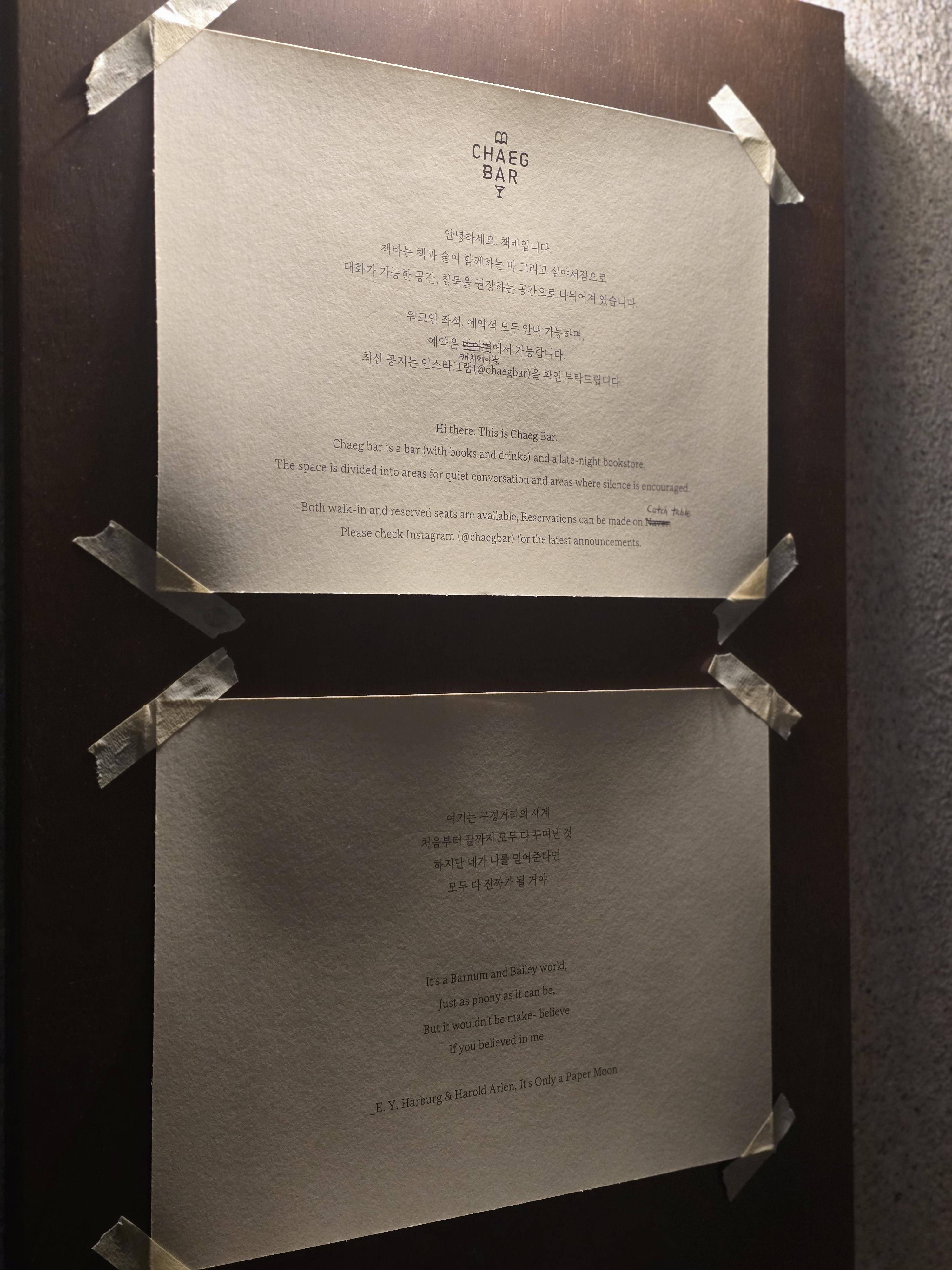 책바는 평소 책을 좋아하거나 조용한 분위기를 선호하는 분들에게 잘 맞는 공간이었습니다. 책과 술이 어우러지는 경험이 궁금하시다면 한번쯤 방문해 보시는 것을 추천합니다.