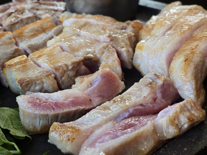 두툼한 육즙: 두께감 있는 삼겹살은 육즙이 풍부하며 고소한 풍미를 극대화합니다.
