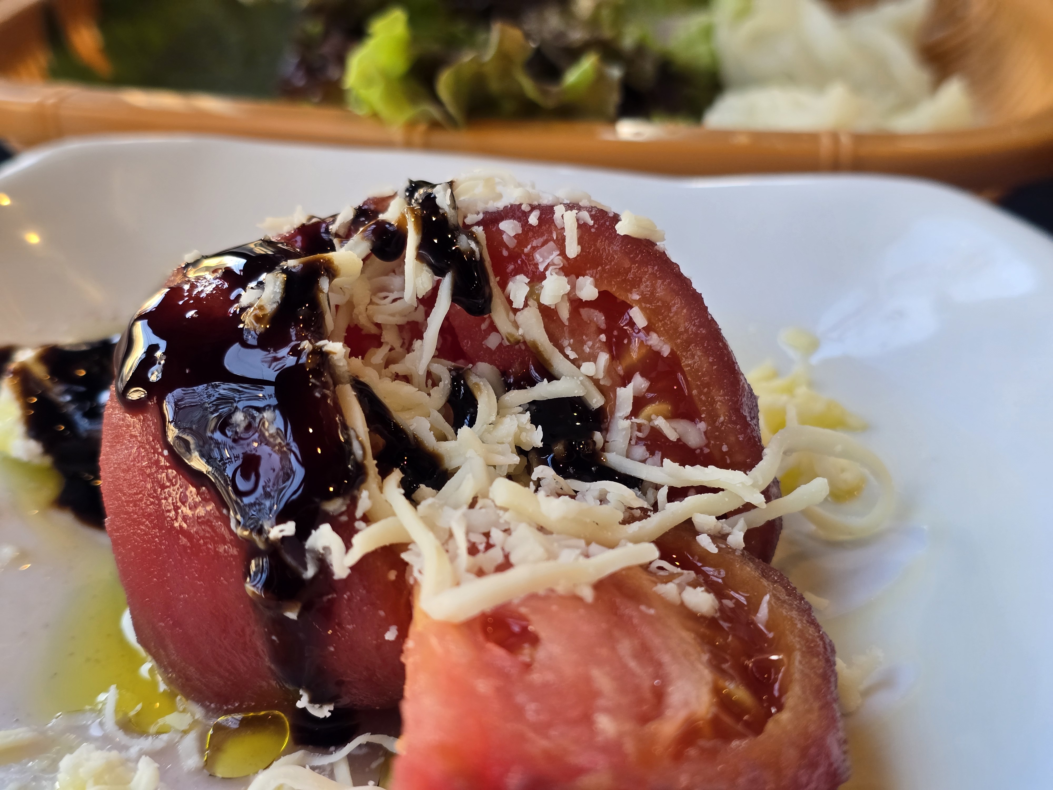 토마토 요리: 신선한 토마토에 발사믹 소스와 치즈를 곁들인 상큼달콤한 메뉴로, 고기의 느끼함을 잡아줍니다.