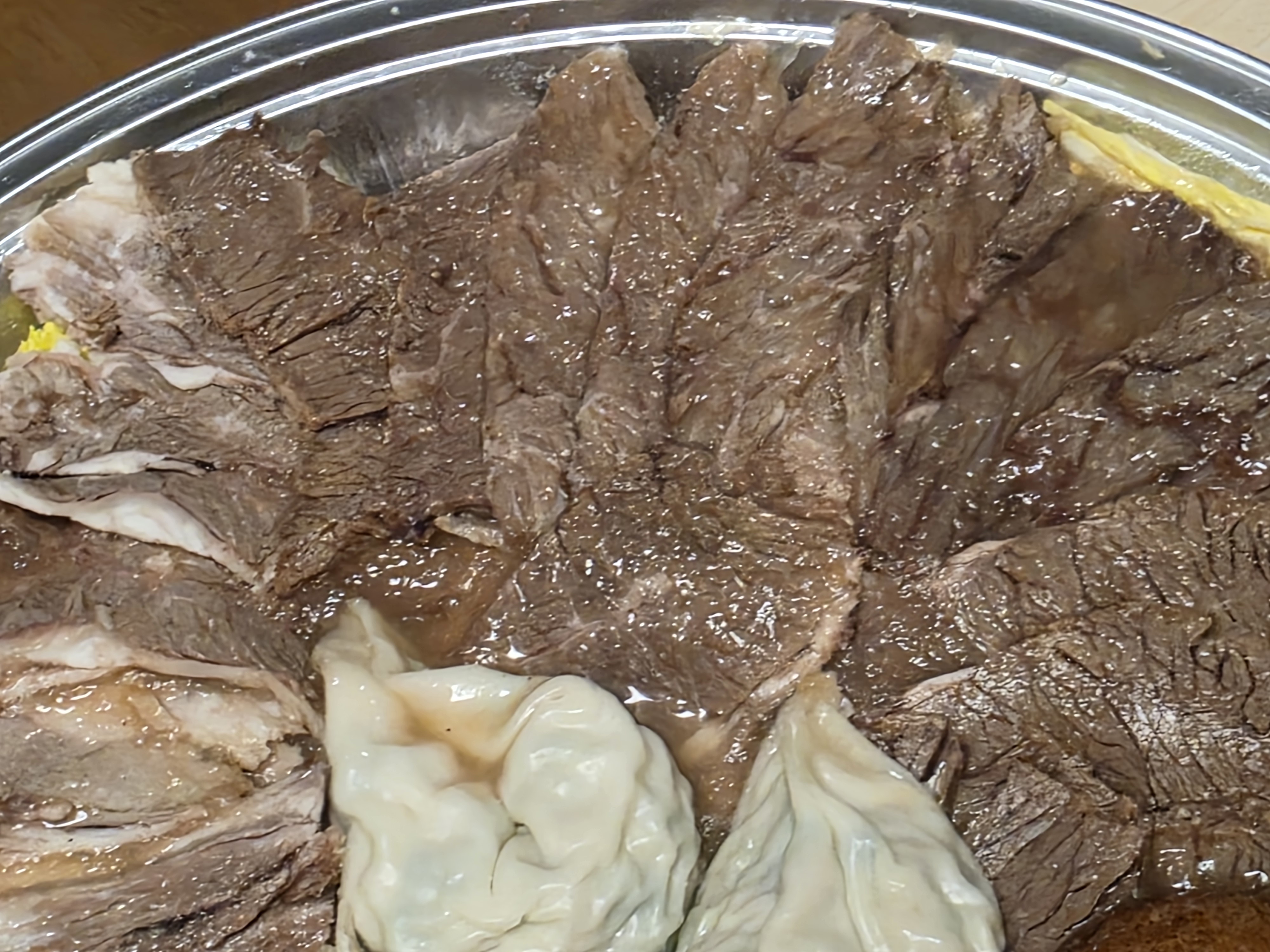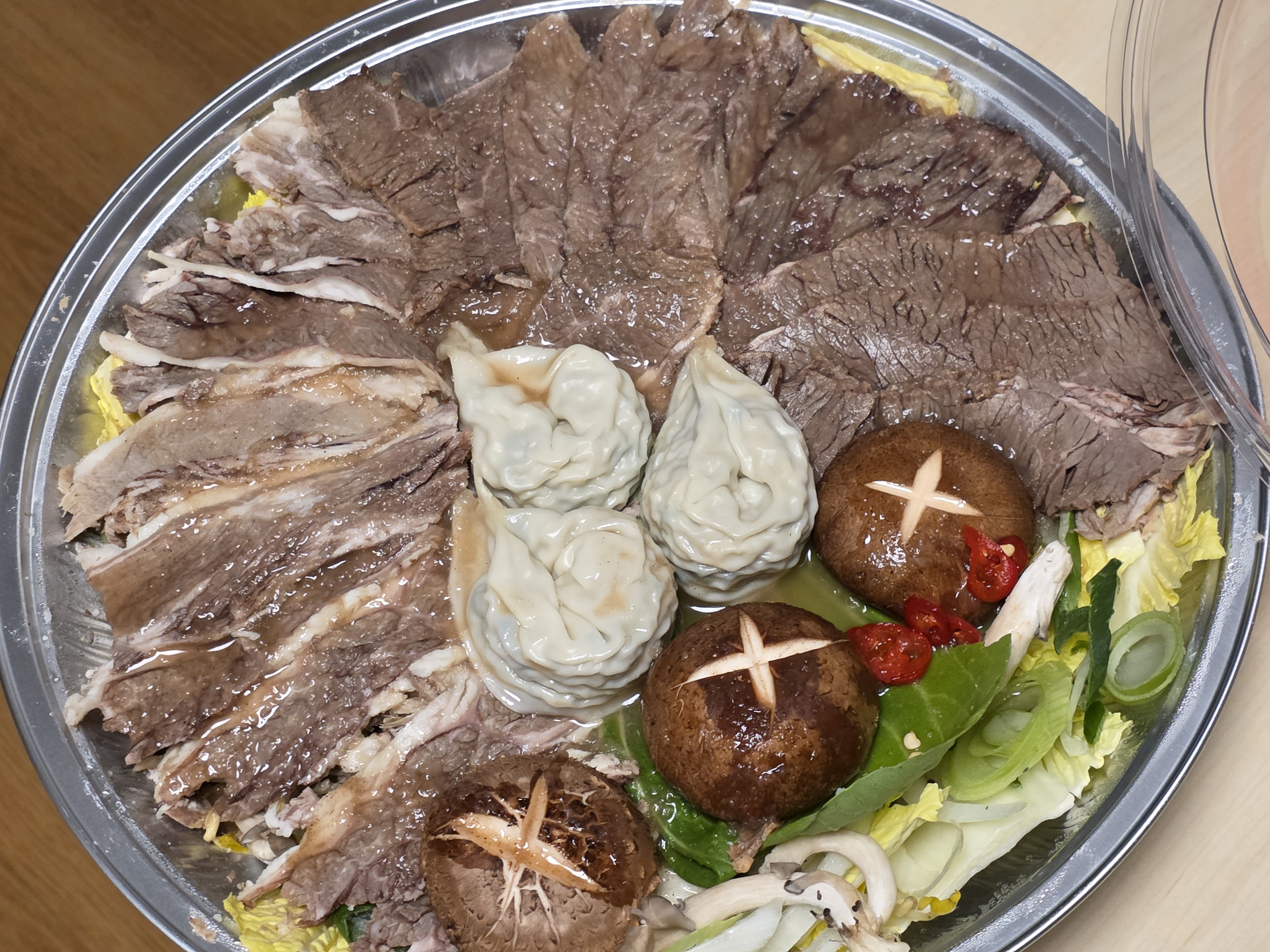 전체적으로 보면 소고기 + 버섯 + 채소 + 만두 구성입니다.