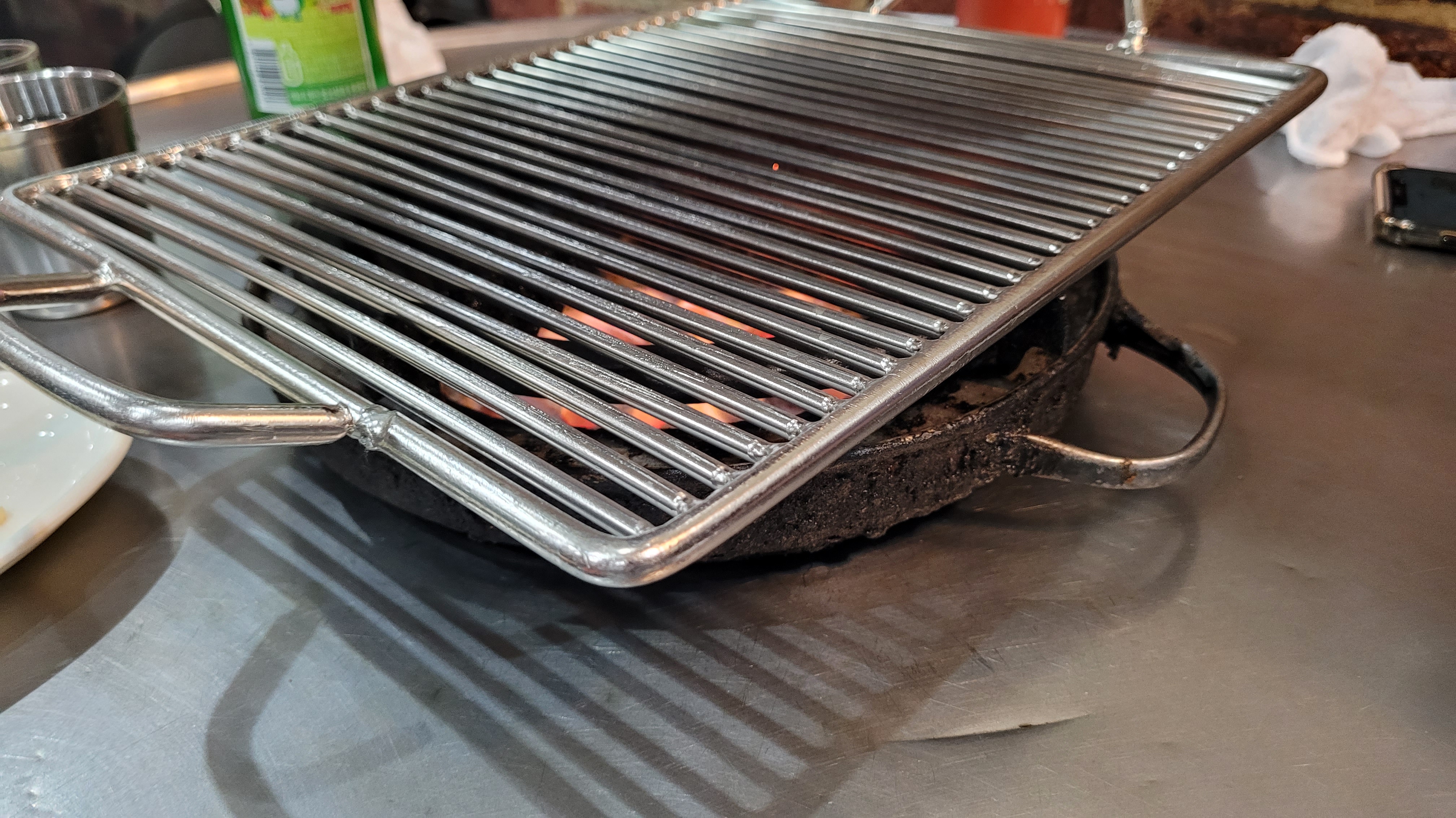 앉게되면 아래처럼 두꺼운 철판에 연탄불을 가져다 주십니다.