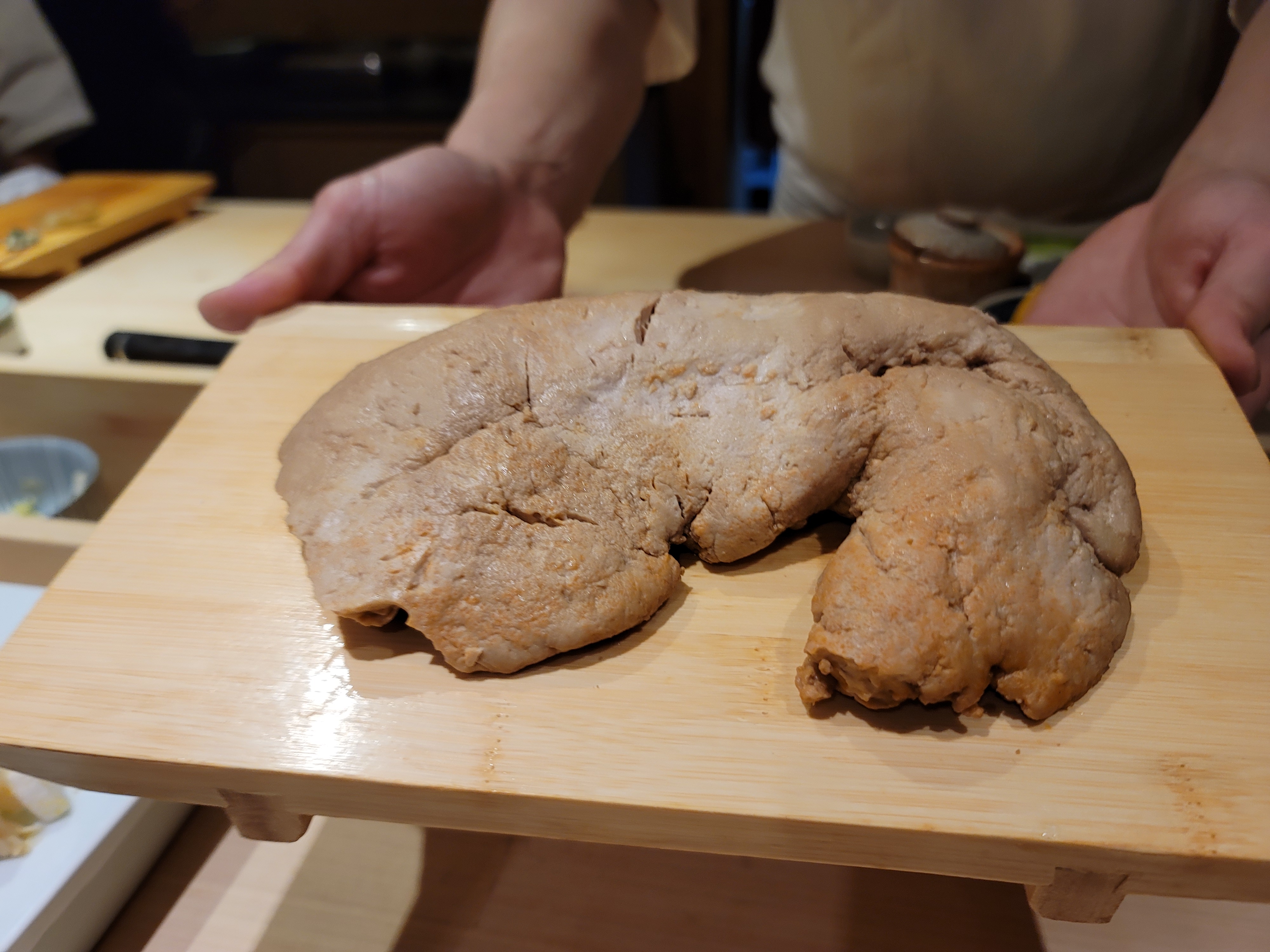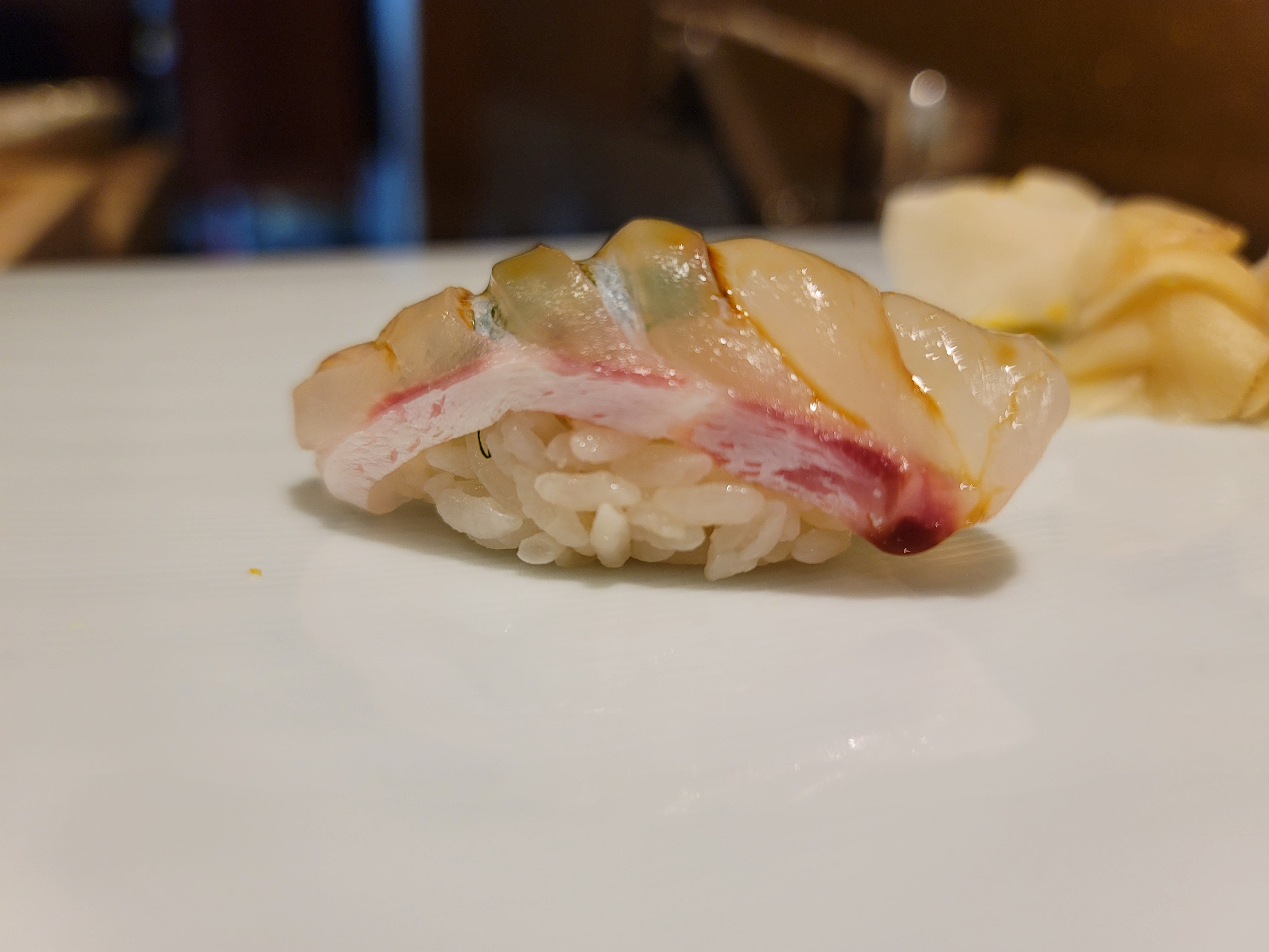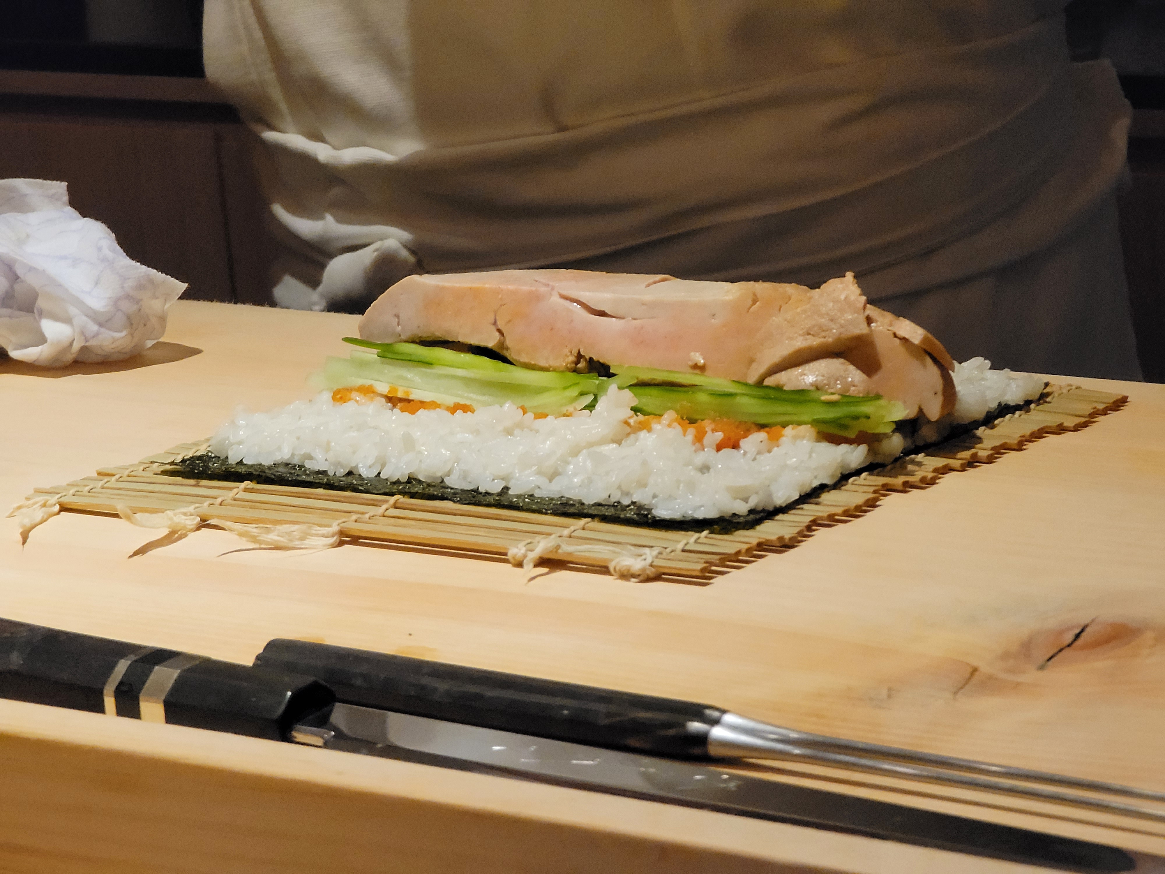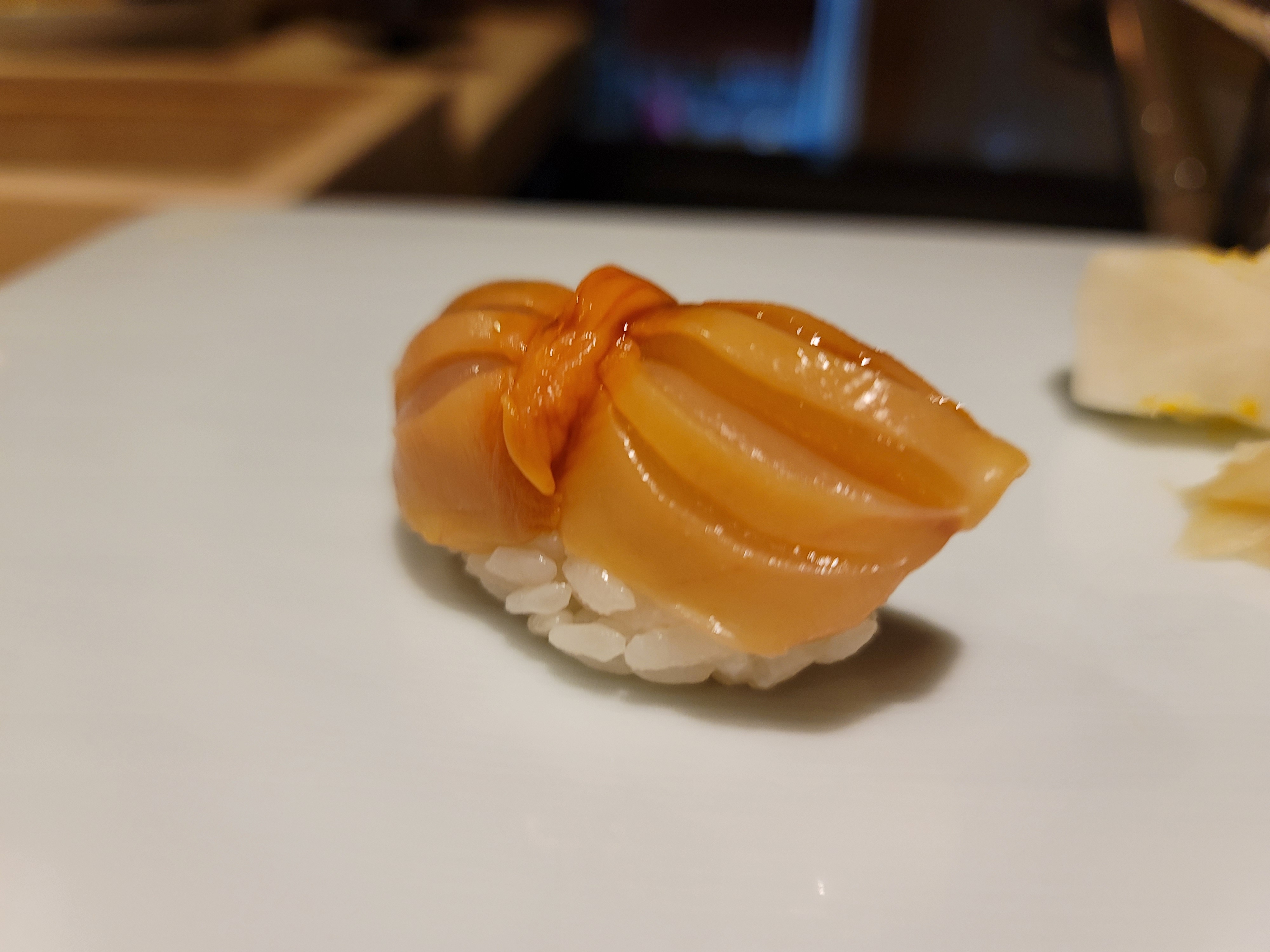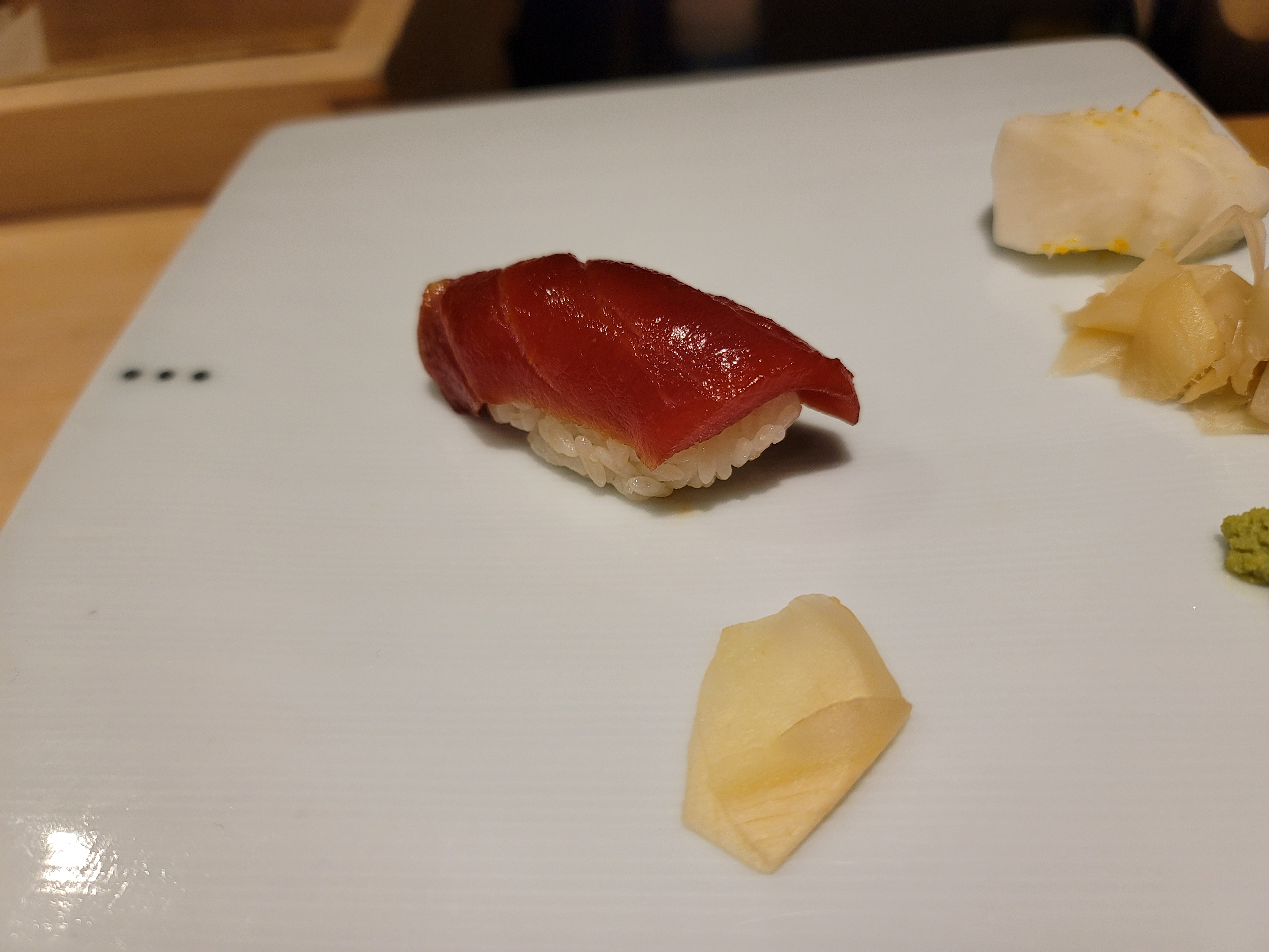 셰프님이 손님과 가벼운 대화를 나누면서도 신중하게 스시를 만드는 모습이 인상적이었습니다. 셰프의 손길을 보며 스시가 만들어지는 과정을 보는 것은 오마카세의 묘미라고 할 수 있습니다.